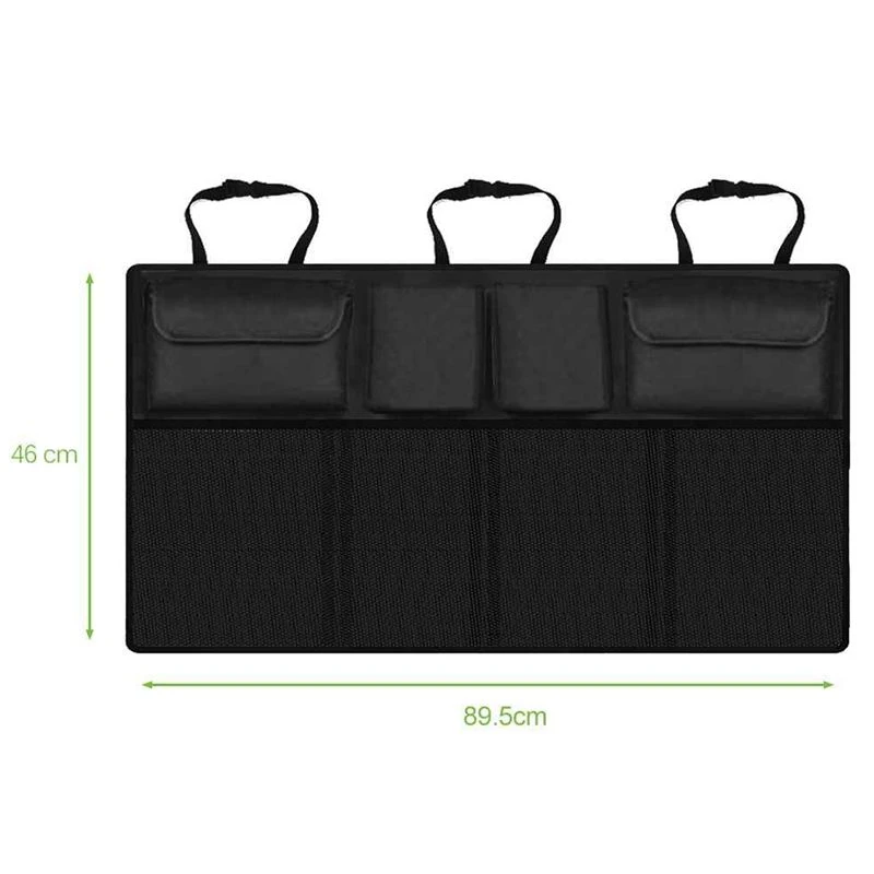 Declutter your car boot with the 5 by 5 Hanging Boot Organiser - the perfect solution to keep your gear, tools, groceries, or travel essentials neat and accessible. This organiser hangs on the rear side of your back seat using adjustable headrest straps and is reinforced with a Velcro strip on the base for added stability. With 4 closed pockets and 4 mesh pockets, it provides generous, compartmentalised storage. Made from durable Oxford fabric, it's easy to install, remove, and fold away when not in use. Features: Saves space, time, and reduces boot clutter Fits most vehicles with adjustable headrest straps Velcro base secures to most furry seat linings 4 covered pockets + 4 mesh pockets for storage versatility Quick-release clips for easy attachment/removal Folds flat for compact storage Specifications: Type: Boot Storage Organiser Material: Oxford fabric Colour: Black Size: 89.5 x 46cm A smart and durable solution to keep your car organised and tidy on every journey. What's in the box 1 x Boot Organiser |