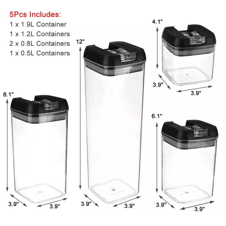 5 Pieces Of Airtight Sealed Stackable Food Storage Container Set - Black