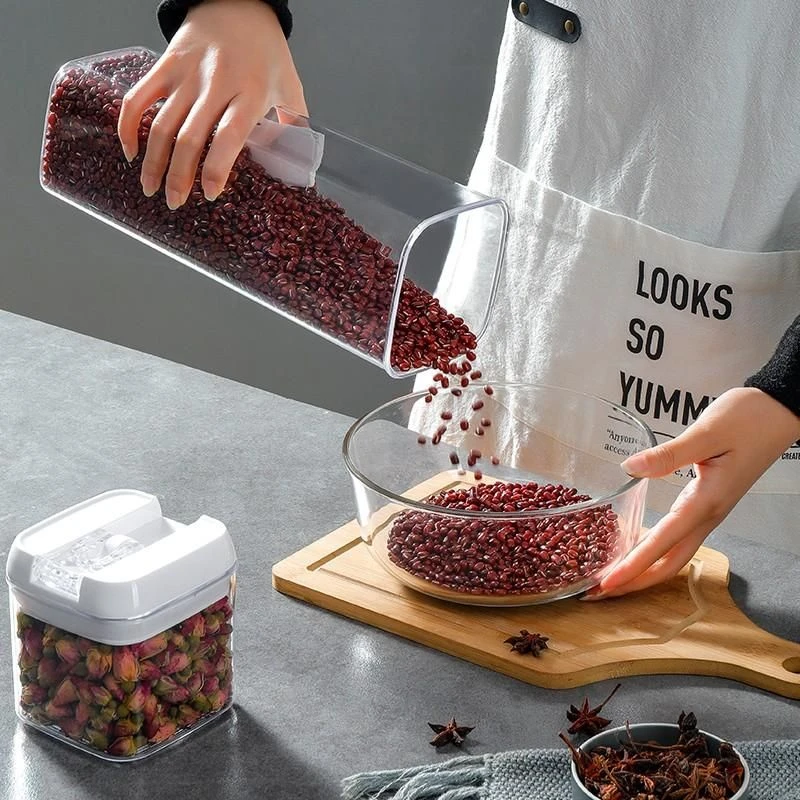 Imagine waking up each morning and walking to the kitchen to make some breakfast, found everything is perfectly organized. You no longer have to worry about everything you want quickly. They will make it feel easy to organize the pantry. Products Features: - Stackable design for space-saving - Keep your food dry and safe with food storage containers - Suitable for grains, flour, sugar, coffee, rice, nuts, snacks, pet food, and more - Easy-lock airtight lids to seal the container tightly and protect your food from pests as well as moisture and oxidation from the air. Products Specifications: - Material: Food grade plastic - Available Color: Black & White 5pcs included: Mini container 1x - Volume: 0.5L - Size: 4.1 x 3.0 x 3.9 inch Small container 2x - Volume: 0.8 L - Size: 6.1 x 3.9 x 3.9 inch Medium container 1x - Volume: 1.2 L - Size: 8.1 x 3.9 x 3.9 icnh Tall container 1x - Volume: 1.9L - Size: 4.17 x 4.17 x 12.2 inch What's in the box 5x Airtight Food Storage Container |