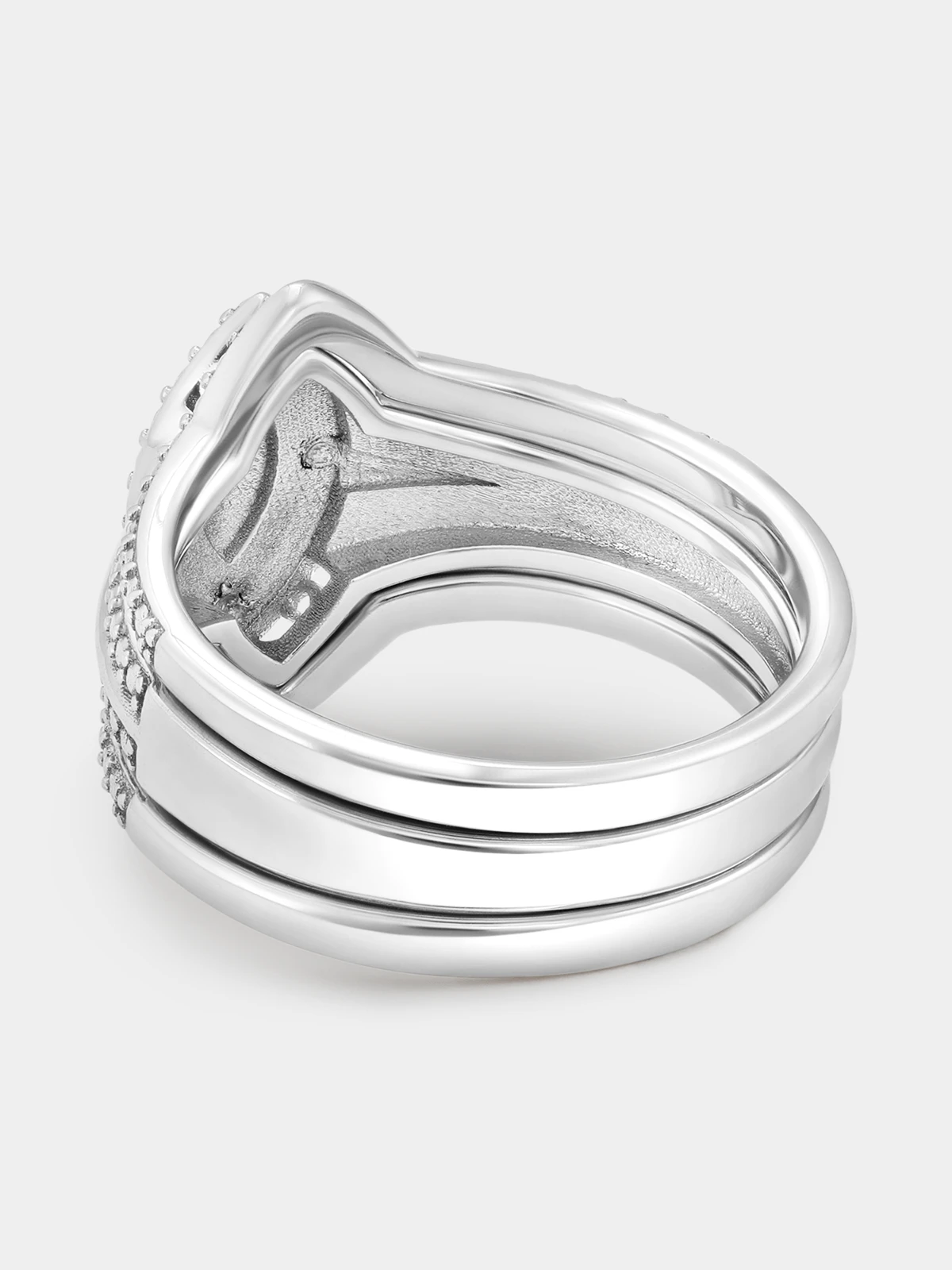 Expertly crafted in 5ct Yellow Gold and Sterling Silver, this beautiful triple set ring features an intricately beaded marquise halo design enhanced by an Earth Grown Diamond accent. The total Diamond weight is 0.003 carats. Gemstone Diamond Material composition 5ct Gold & Sterling Silver Ring size P Fibre content SILVER;GOLD Stone colour CLEAR Material colour Yellow & Silver |