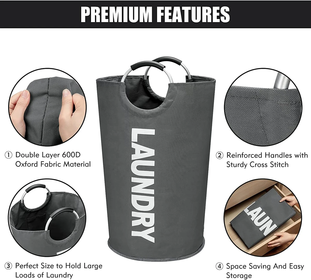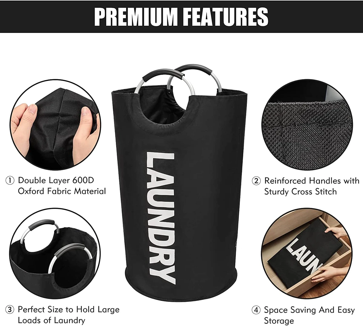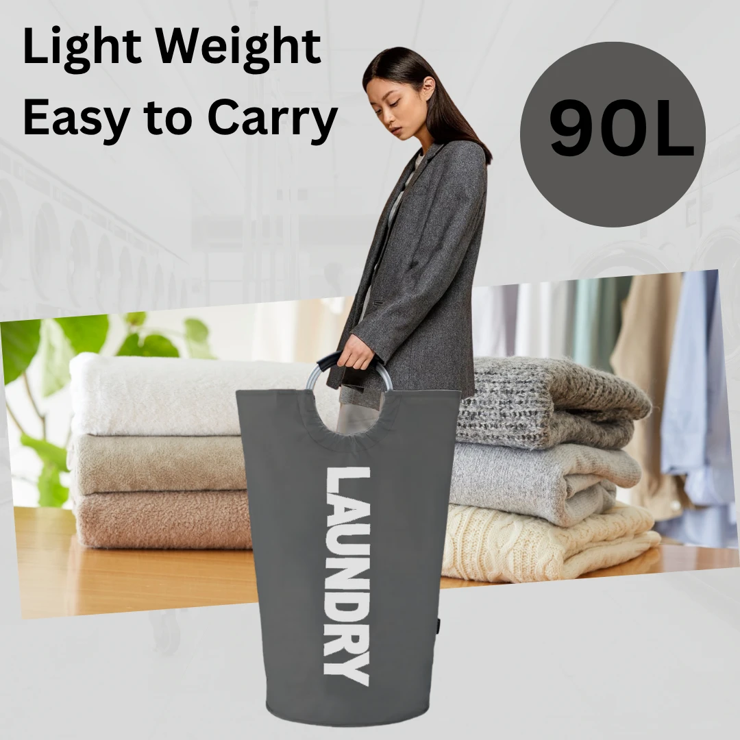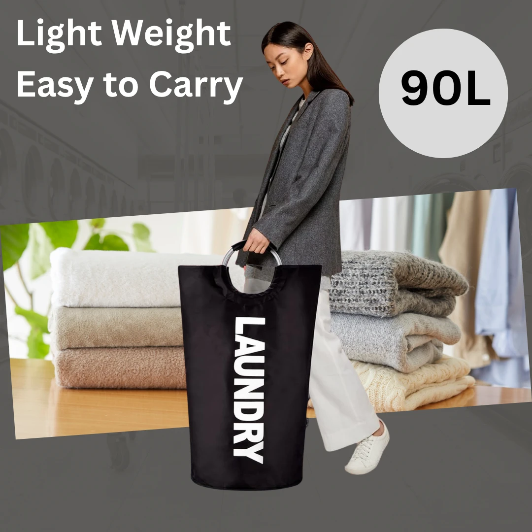 The extra large laundry basket will perfectly meet your daily laundry needs, its freestanding and collapsible design is suitable for most situations use,such as bedroom, closet, comfort room, laundry room, living room and camping etc. It can easily be stored away when not in use for space saving. The Extra large capacity basket can also be used to store toys, clothes, blankets, towels, books and more. Product Features: - Built to last: It is made from highly durable material that is lightweight and will provide years of use, the robust stitching that won't rip and tear even with constant use. - Aluminum handle with soft grip: Durable, sturdy and strong for heavy duty, it is easy to carry. - Good Material & Waterproof: Double layer 600D fabric oxford with PE coating inside for waterproof. -Tips: Do not use washing machine to clean the bag, it will damage coating. Product Specifications: - Extra Large Capacity: 90L - Dimensions: 40 x 40 x 78cm (includes handle) What's in the box 1 x 90L Extra Large Collapsible Laundry Basket |
