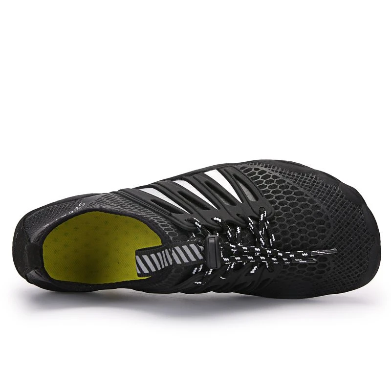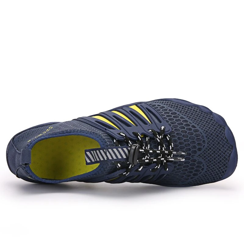 Features: - Anti-slip and flexible rubber soles are thick enough to protect your feet on rocks and stones and provide sun protection for feet on hot sand. - Quick-drying: these water shoes will dry out very fast with 11 holes on the bottom of them to ensure a cooler, drier and healthier shoe environment. - Great for most outdoor/indoor activities - not only perfect for water sports, such as beach, pool, swimming, sailing, surf, scuba, snorkelling, boating, kayaking. But also, as an alternative to indoor slippers, walking shoes or treadmill trainers, when doing light activities. - Quick slip-on design with a pull tab at the heel allows for quick and easy entry. The flexible, breathable upper material makes them a stretchy and comfortable fit. Specifications: - Outer material: synthetic - Inner material: textile - Sole: gum rubber - Closure: speed laces What's in the box 1 x Pair of Shoes |