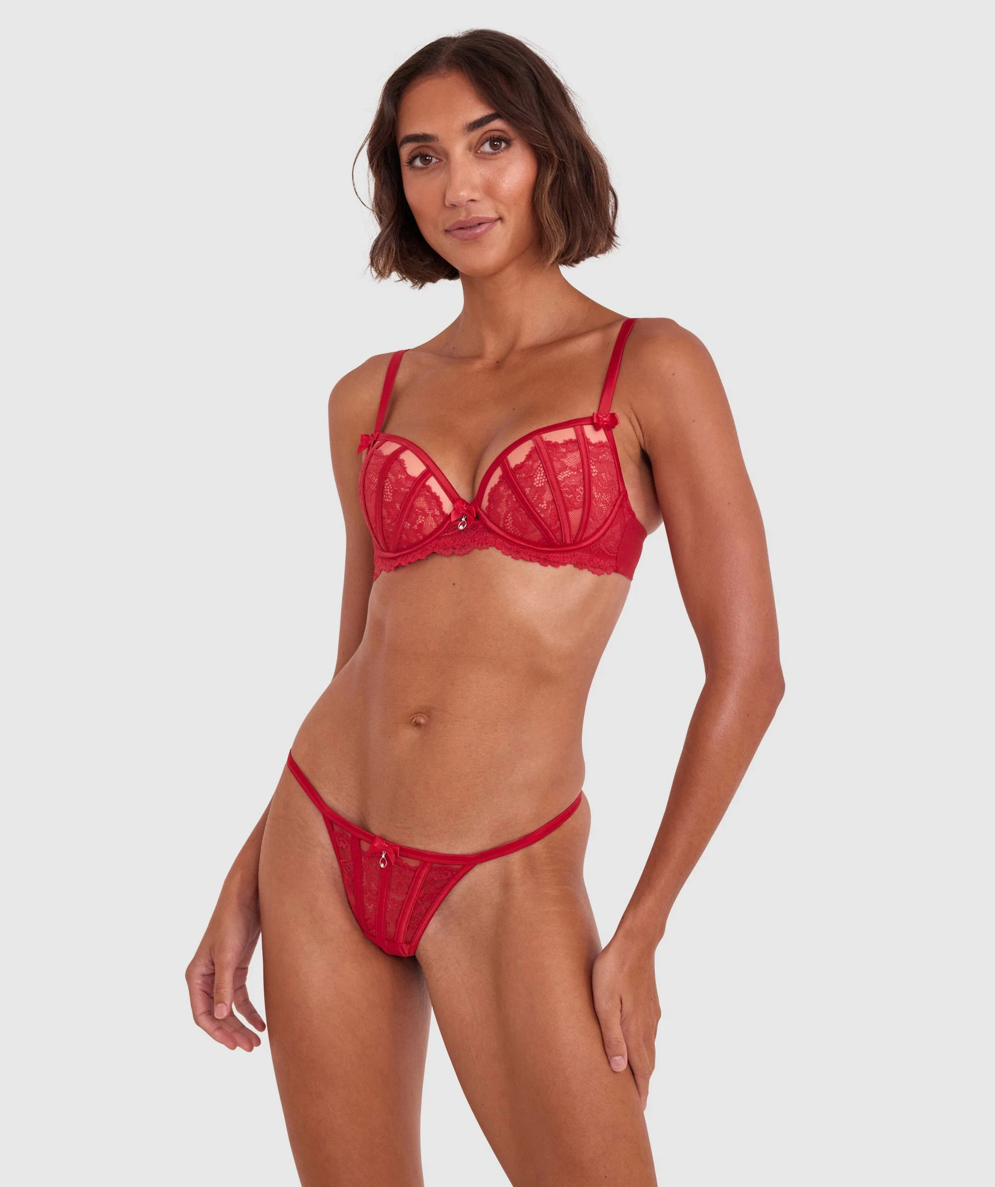 Bethany is that friend who always has it together (and makes it look easy). The Push Up Demi Hope adds volume, lift and support with strategic padding that works with your shape - not against it. Centre front cut-out, satin binding, bow and trinket. The boost you didn't know you needed, delivered without the drama. Features: