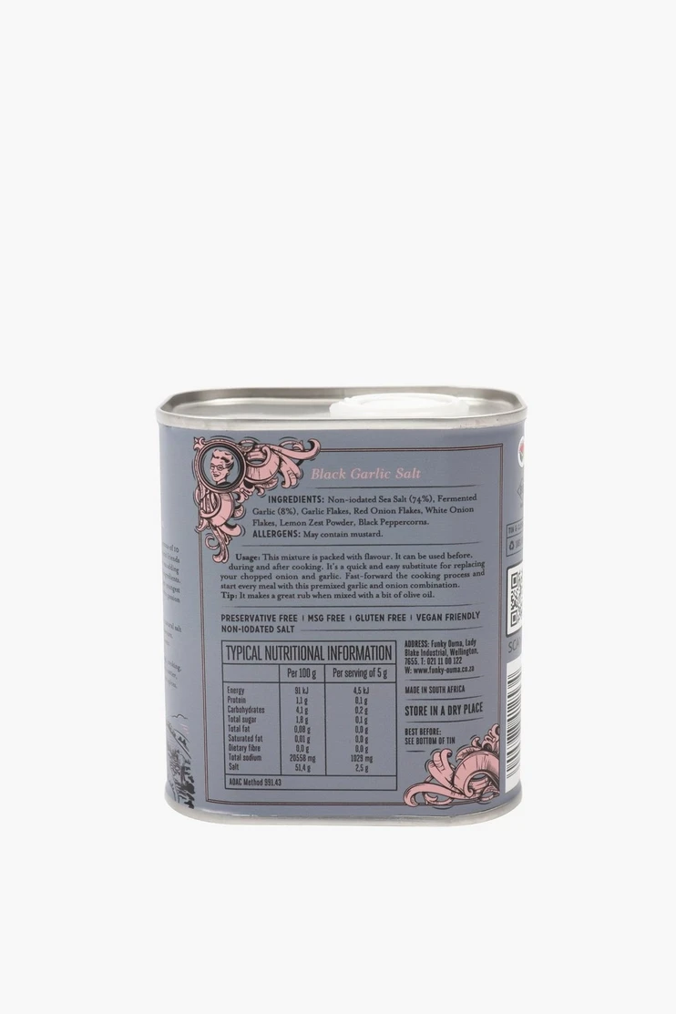 This is a very trendy flavourful salt. Himalayan salt and fermented garlic (black garlic). This is a natural substitute to table salt. Kids love this one! |