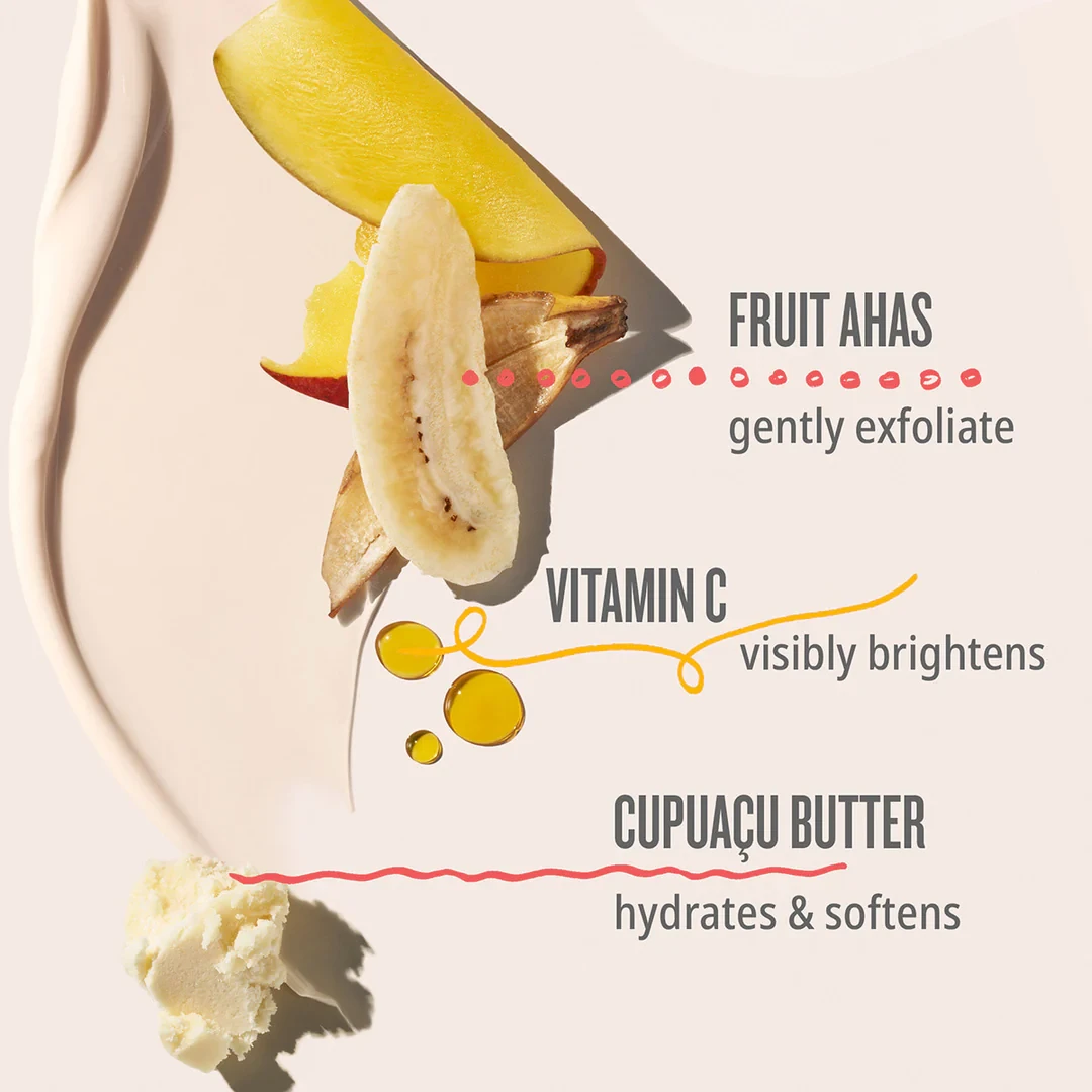 A retexturizing and nourishing daily body cream with Fruit AHAs and Vitamin C that reveals visibly brighter, smoother skin. It’s a bom dia (good day) for your gorgeous skin! This daily moisture-rich body cream gives you silky-smooth skin with a healthy glow all the way down to your toes. Fruit AHAs and vitamin C gently exfoliate to unveil visibly lustrous, revitalized, more even-toned skin. The fast-absorbing, renewing-feeling formula smooths rough texture, leaving skin remarkably soft. Scented with irresistible, warm, rich notes of black amber plum and vanilla woods. Clinical Results: In a consumer testing study of 133 participants who tried a ""body cream"" once daily in generic packaging with no brand affiliation; conducted by an independent 3rd party lab. Instant - 89% of participants reported noticeably softer skin immediately after using this product After 1 Week - 96% reported smoother feeling skin After 2 Weeks Participants reported skin was visibly BRIGHTER, more EVEN in tone, and SMOOTHER in texture - 100% of participants with dry skin reported that skin was more radiant - 90% of participants with self-identified KP said the look and feel of their KP improved The box of the full-size Bom Dia Bright™ Body Cream is recyclable and made from 80 percent Forest Stewardship Council-certified recycled materials. Application (How To) Smooth on daily, morning or night, for moisturizing and retexturizing benefits all over. For speedier results, use 2 times a day on areas prone to ingrown hairs due to hair removal (underarms, bikini line, legs, etc.), as well as bumpy, rough spots (upper arms, thighs, and bum bum). Ingredient Callouts: Free of sulfates SLS and SLES, parabens, formaldehydes, formaldehyde-releasing agents, phthalates, mineral oil, retinyl palmitate, oxybenzone, coal tar, hydroquinone, triclosan, and triclocarban. This product is also vegan, cruelty-free, and gluten-free. Key ingredients: Fruit Alpha-Hydroxy Acids, Vitamin C Este, Cupuaçu Butter. Aqua (Water, Eau), Methyl Glucose Sesquistearate, Dodecane, Caprylic/Capric Triglyceride, Cetearyl Alcohol, Parfum (Fragrance), Phenyl Trimethicone, Cetyl Alcohol, Glycerin, Theobroma Grandiflorum (Cupuaçu) Seed Butter, Spondias Mombin (Cajá) Pulp Extract, Musa Sapientum (Banana) Pulp Extract, Mangifera Indica (Mango) Pulp Extract, Carica Papaya (Papaya) Fruit Extract, Salix Alba (Willow) Bark Extract, Tetrahexyldecyl Ascorbate, Cocos Nucifera (Coconut) Oil, Euterpe Oleracea (Açaí) Fruit Oil, Gardenia Taitensis Flower Extract, Xanthan Gum, Tocopherol, Hydroxyethyl Acrylate/Sodium Acryloyldimethyl Taurate Copolymer, Glyceryl Caprylate, Ethylhexylglycerin, Sorbitan Isostearate, Ethylene Brassylate, Glyceryl Stearate Citrate, Sodium Stearoyl Glutamate, Phenoxyethanol, Benzyl Alcohol, Potassium Sorbate, Citric Acid, Sorbic Acid, CI 17200 (Red 33), CI 19140 (Yellow 5). *The list of ingredients is subject to change; please consult the packaging of the product purchased. |