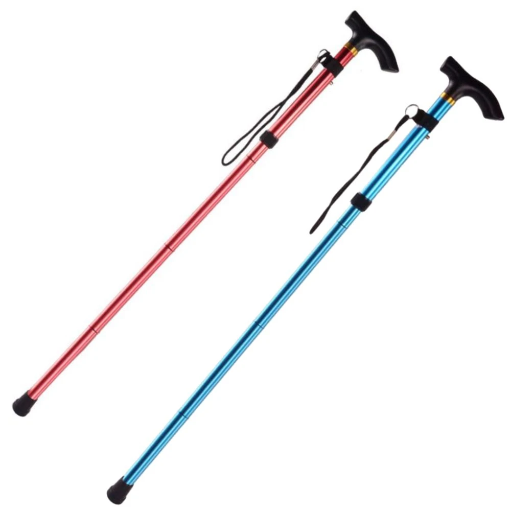 100% brand new and high quality. Strong and sturdy, promising a long lasting service life. Length: 85-95cm, adjustable per user preference. Colours: As shown Materials: High quality aluminium alloy. These walking sticks are used to maintain balance when hiking on very uneven ground or when going up or down steep grades. Lightweight and durable. What's in the box 2 X Foldable Hiking Walking Sticks |