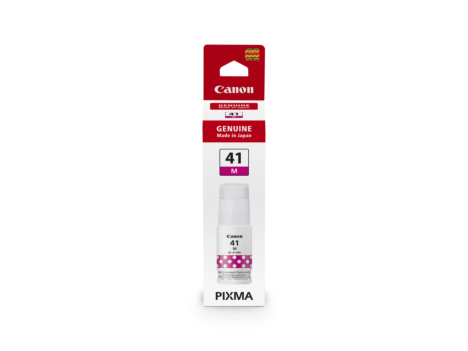 Magenta ink bottle Page yields up to 7700 per bottle Enables low cost printing Enhanced mess-free bottle Dye colour ink Delivering vivid colour 6 Month Warranty Canon GI-41 Magenta InkExperience vibrant, high-quality prints with the Canon GI-41 Magenta Ink Bottle. Designed for Canon ink tank printers, this magenta dye ink delivers vivid color that brings your documents and photos to life. With a generous page yield of up to 7,700 pages per bottle, it offers exceptional value and low-cost printing for your office or creative projects. The enhanced mess-free bottle design ensures easy, clean refills, letting you focus on what matters most. |