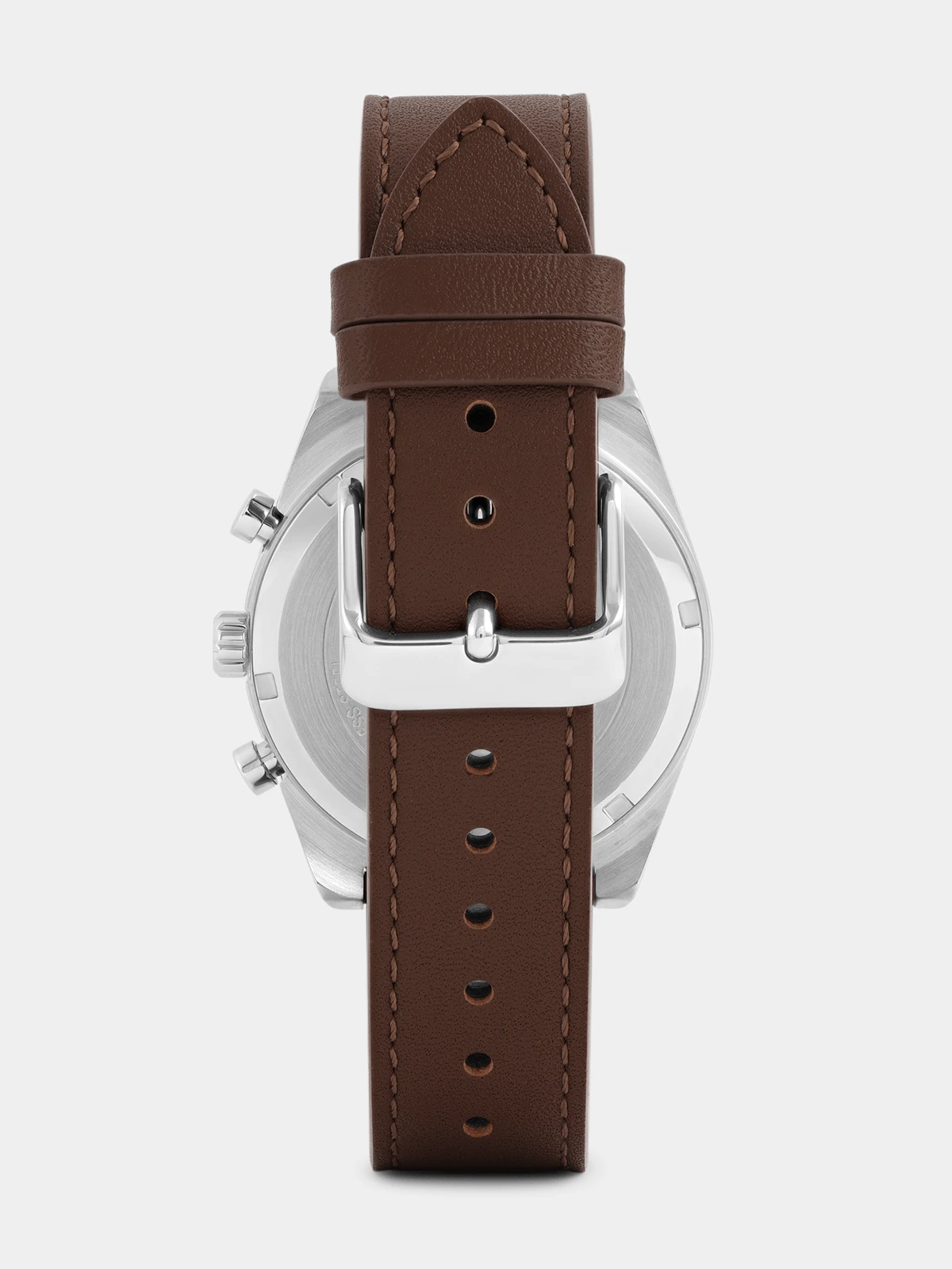 This sporty watch features a Stainless Steel round case, white and black multifunction dial with chronographic movement and brown genuine leather strap. Special features include 100-metre water resistance and a 1-second stopwatch. Guarantee/warrantee 1 Year Warranty Material composition Stainless Steel Fibre content STAINLESS STEEL, LEATHER Waterproof Water Resistant Dial colour White & Black Strap colour Brown Material colour Silver Watch case size 49.5mm x 45.5mm x 13.7mm Dial shape Round |