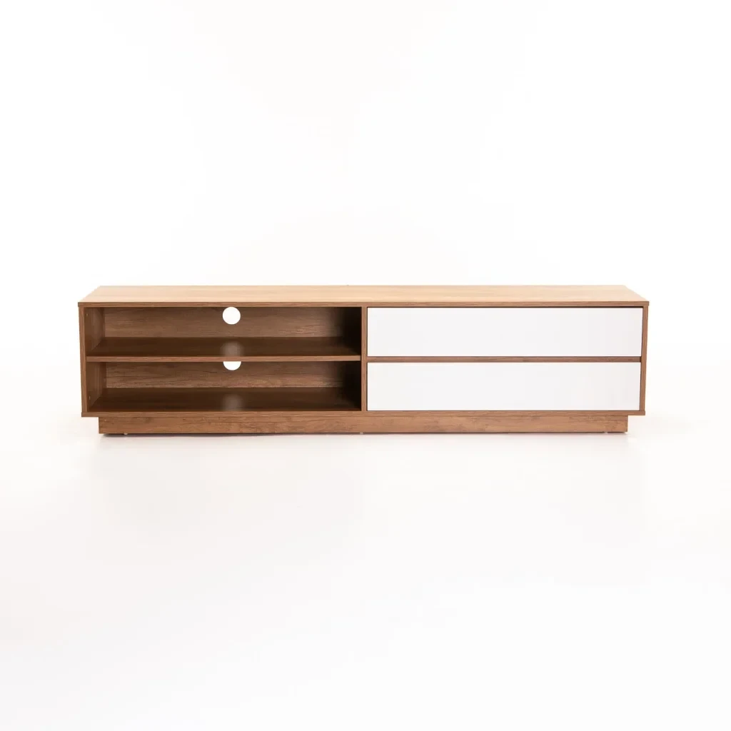 Create a minimalistic Scandinavian aesthetic in your living room with Cento 180cm 2 Drawer TV Unit. It features a substantial amount of space for your large TV and two drawers with metal rails for plentiful storage. Additionally, two cable ports are located on the back of the unit, allowing you to easily manage cables and keep them concealed. Constructed of hard wearing melamine, this reliable and stylish piece will be a great addition to your lounge. |
