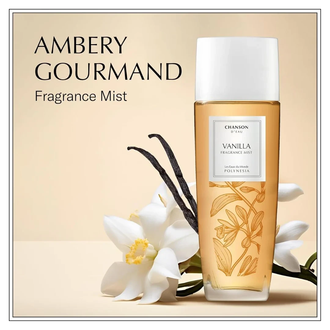 Embark on a journey to the aromatic vanilla fields of Polynesia with Chanson d'Eau Vanilla Scented Body Mist. This warm, soothing scent is a delicious combination of juicy pear and apple, sweetened with notes of caramelized sugar and crowned with warm vanilla notes, radiating a uniquely seductive elegance and femininity. Tastefully light and uplifting, Chanson d'Eau Les Eaux Du Monde fragrances can be worn all over the body and hair. Delightfully light and uplifting, Chanson d'Eau's Les Eaux Du Monde fragrances are designed to be used all over the body and hair. Try layering with other fragrances in the collection to create your own unique, signature blend. Each Chanson d'Eau Les Eaux Du Monde Mist fragrance mist is presented in a classic, gently curved glass bottle featuring an elegant illustration of the signature ingredient. Begin your sensorial journey and be inspired by idyllic locations around the world. A refreshing world of fragrances for women is here, with Chanson d'Eau Les Eaux du Monde. FRAGRANCE NOTES: