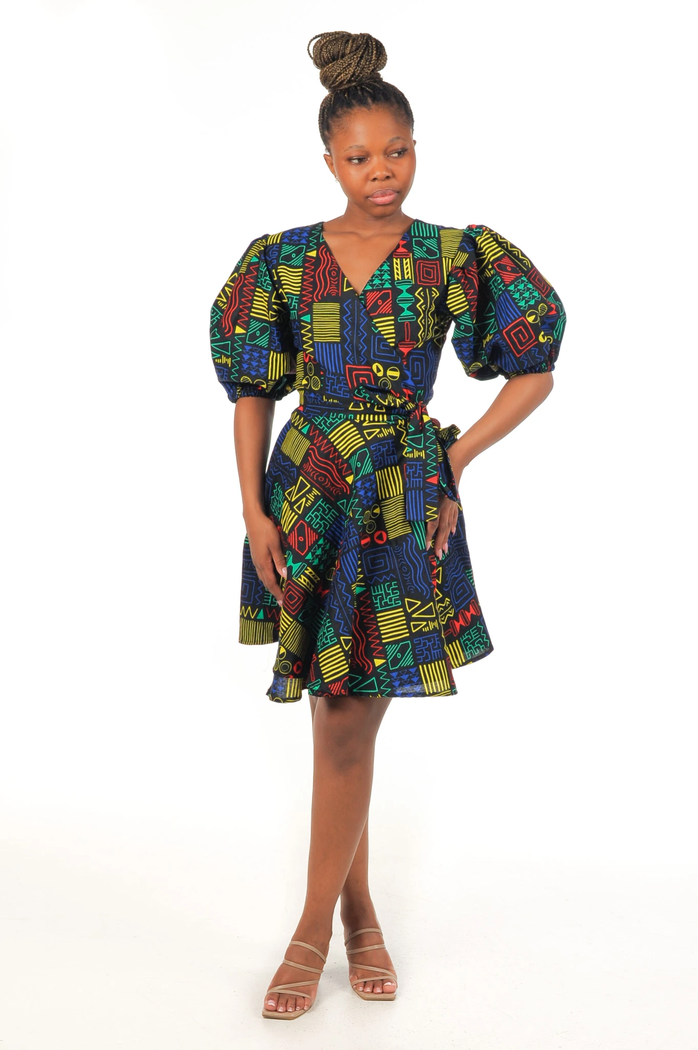 The Color Bogolan Wrap Dress is made of Cotton fiber and manufactured under the best quality standards Guaranteed Real African print 100% Cotton |