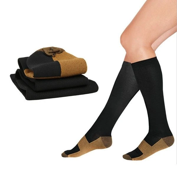These copper embedded fiber compression socks provide support due to the densely structured material. The optimal compression increases blood flow during a long flight, sitting, or standing, and prevents swelling and inflammation. Features: Relieve Plantar fasciitis, arch pain, promote blood circulation, relieve morning foot pain, and blood stasis. - Made with unique copper injection, sweat-wicking fabric, keeping warm in cold temperature, and cool when the temperature rises. - Protect and relieve lower limb varicose veins during traveling or sporting, by promoting strong blood flow via compression - Reduce swelling of feet and legs, lactic acid production, and cramps. - Made of breathable and quick-drying integrated fabric to reduce muscle soreness and feel comfortable. - Wicking design enables chafing & irritating wearing experience over an extended period. - Reduce soreness and cramps or improve athletic performance. - Provide support for your legs and feet. Specifications: Colors: Black & tan Material: cotton, microfiber, spandex Machine wash: hang dry Gender: Unisex What's in the box 1 x Pair Compression Socks |