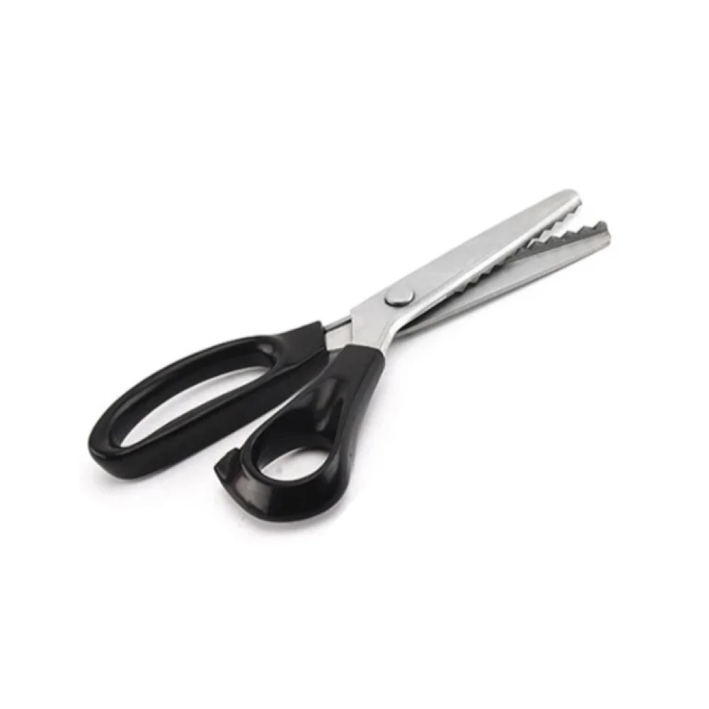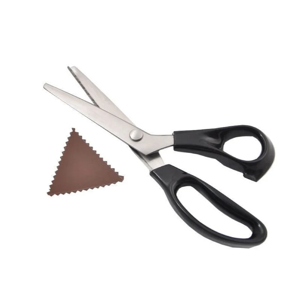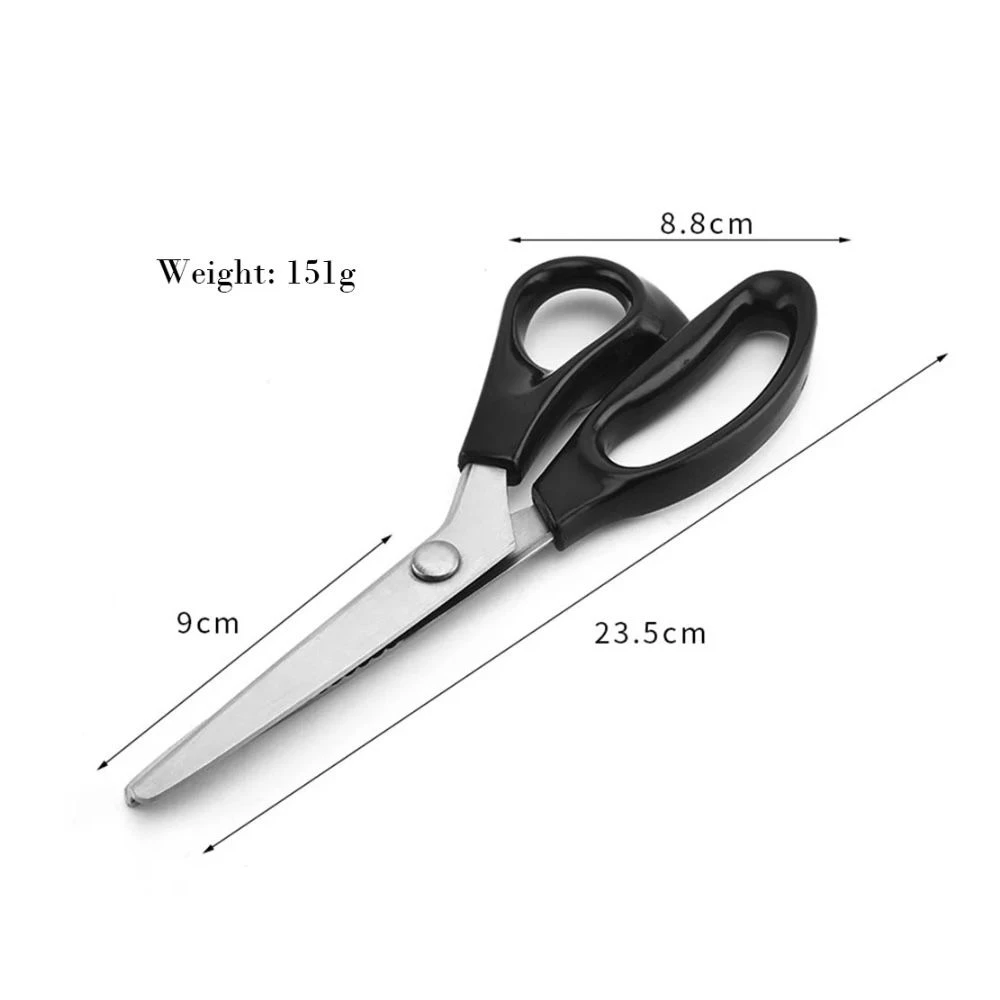 Suitable for Fabrics, Linings, Paper, and craft uses Material: Stainless Steel Blade(3Cr13) + PP Handle Length:23.5cm(9'')) Blade length:9.5cm(3.74'') Colour: Black TriangleTeeth (7mm teeth distance) Circle Arc Teeth(7mm teeth distance) What's in the box 1 x Shape Cutting Scissors |