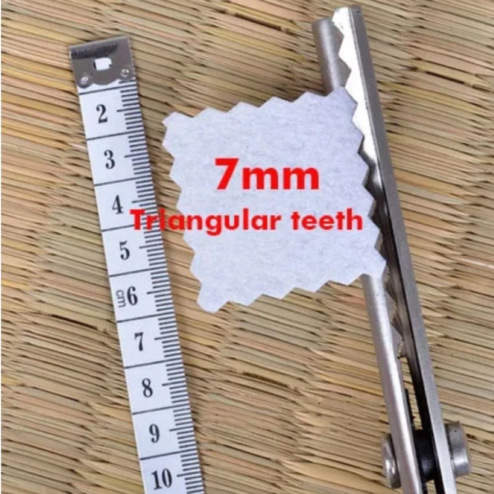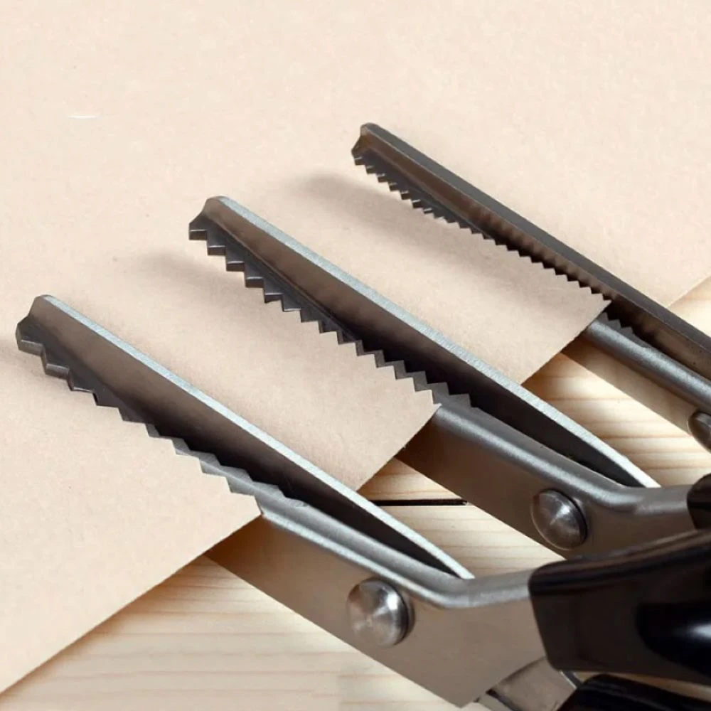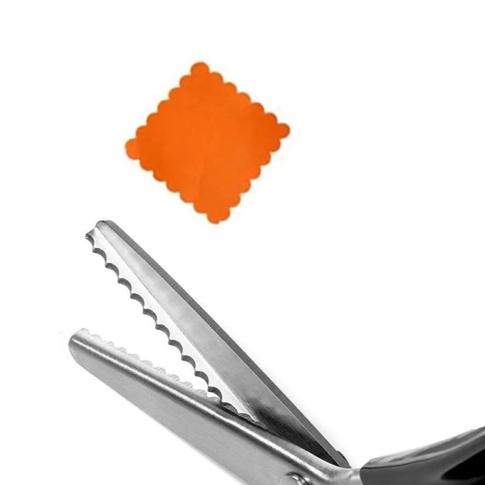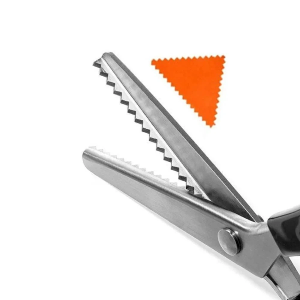 Suitable for Fabrics, Linings, Paper, and craft uses Material: Stainless Steel Blade(3Cr13) + PP Handle Length:23.5cm(9'')) Blade length:9.5cm(3.74'') Colour: Black TriangleTeeth (7mm teeth distance) Circle Arc Teeth(7mm teeth distance) What's in the box 1 x Shape Cutting Scissors |