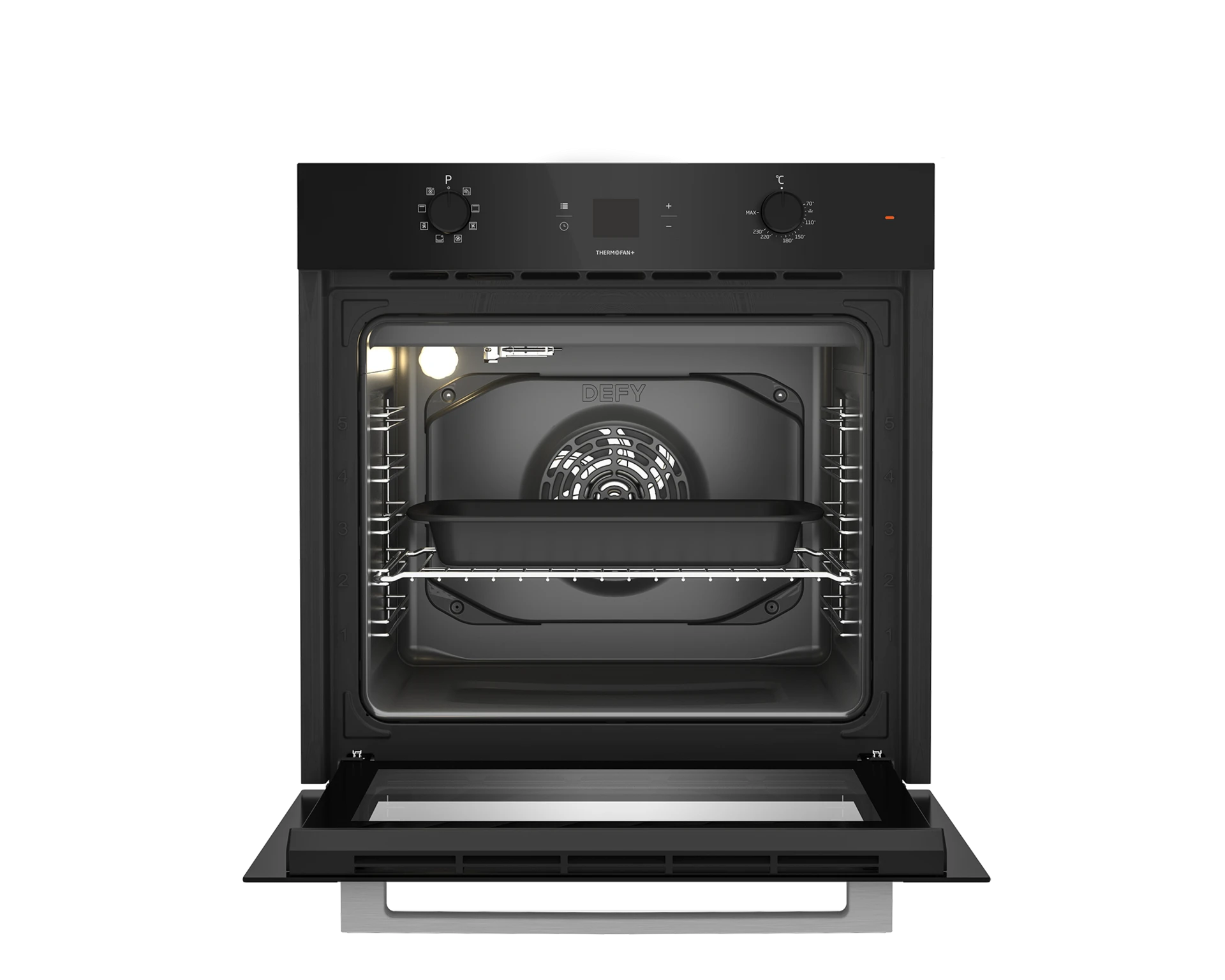 Oven type: eye level Thermofan+ Energy rating: A Usable volume: 70L Timer: touch control digital timer Handle: square brushed aluminium handle Inner oven door: removable inner glass 2 Year Warranty Defy Slimline Eye Level Oven DBO489EElevate your kitchen with the sleek and stylish Defy Slimline Eye Level Oven DBO489E. Designed for convenience, this black glass oven fits perfectly at eye level, making cooking effortless and enjoyable. Featuring Thermofan+ technology, it ensures even heat distribution for perfectly cooked meals every time. With a spacious 70-liter capacity and an energy-efficient A rating, it combines power and eco-friendliness. The touch control digital timer and removable inner glass door add to the ease of use and maintenance. Finished with a modern square brushed aluminium handle, this oven brings both style and function to your home. |