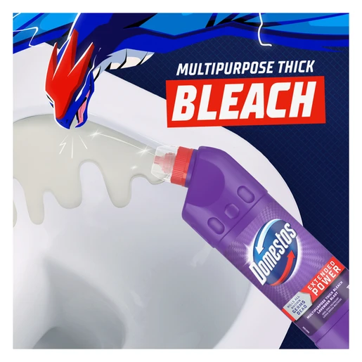 Protect your home and family with the unique germ-fighting properties of Domestos Lavender Multipurpose Stain Removal Thick Bleach Cleaner. Specially formulated to be long-lasting and highly effective, Domestos bleach kills all known germs. If you want to keep your family safe from germs and your home looking clean, fresh and welcoming, choose Domestos cleaning products. The reliable extended power bleach cleaner and sanitizer is safe to use on almost all household surfaces, both indoors and outdoors. You can keep your floors, walls, toilet bowl, patio and more clean, sparkling and germ-free with Domestos Multipurpose Bleach. It's the best way to keep your home or workplace hygienic, clean and free of germs. When you use Domestos bleach, it's easy to keep your family healthy and protected from germs. This Domestos Multipurpose Thick Bleach has been formulated to disinfect, fight germs and keep surfaces brilliantly clean and shining. Domestos Multipurpose Bleach will also clean and prevent limescale build-up in your toilet bowl. It clings to the toilet bowl, even below the waterline, to provide an extra layer of sanitation protection. With Domestos, you get up to 3 times better stain prevention*, helping to keep your toilet bowl sparkling clean and hygienic for the whole family. *On limescale versus previous formulation. |