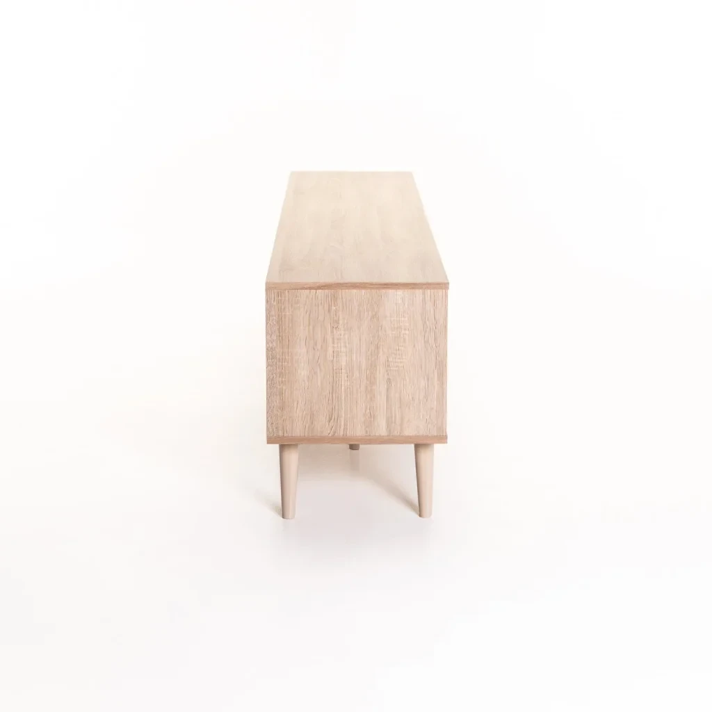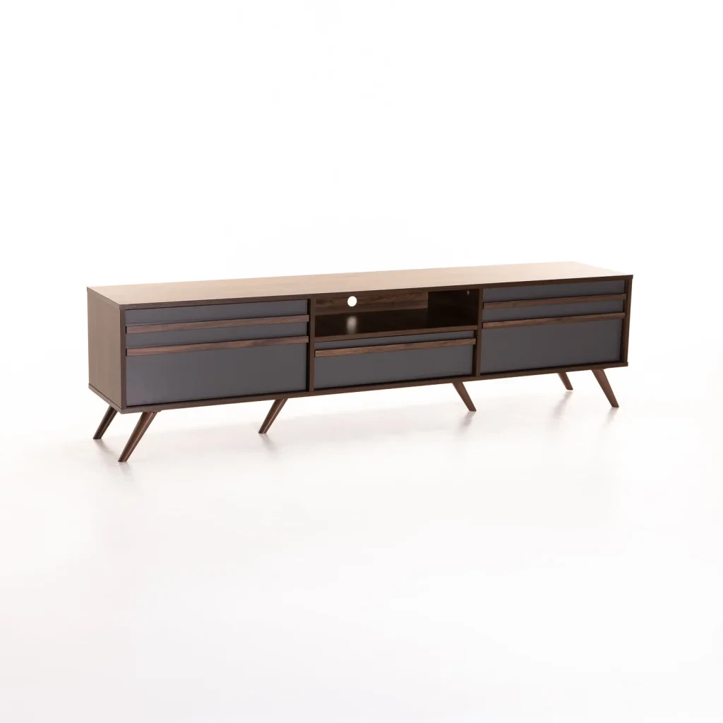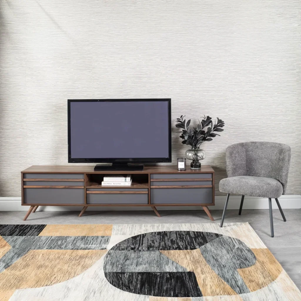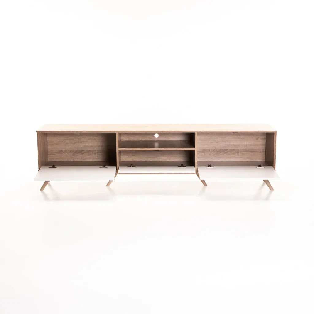 Introducing the Eve 180cm 2 Door 1 Drawer TV Unit a contemporary media storage piece with an elegant retro charm. Constructed from two-tone engineered wood this TV stand is equipped with two doors, one drawer and splayed legs. It's vertical handles give it a sophisticated yet functional look. |