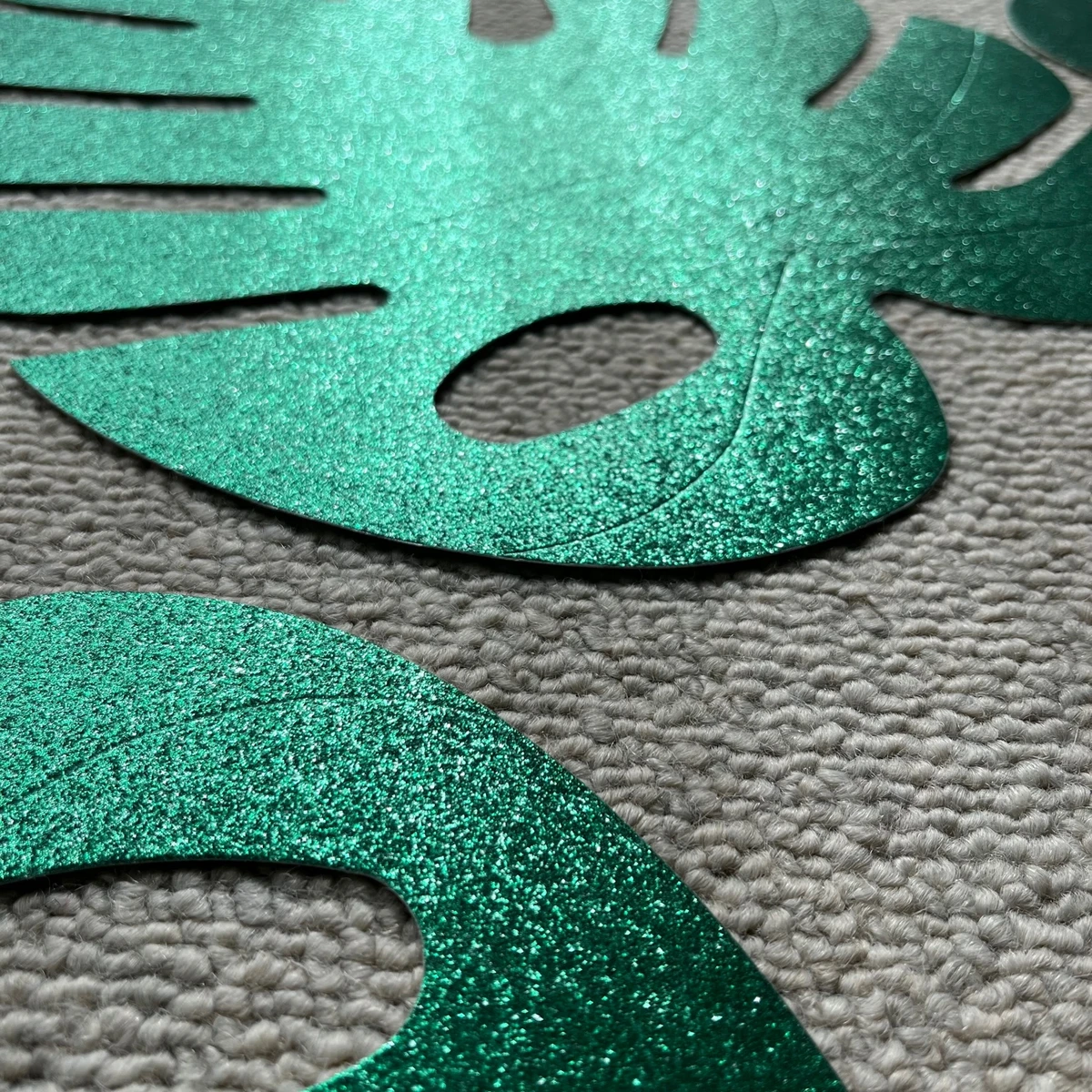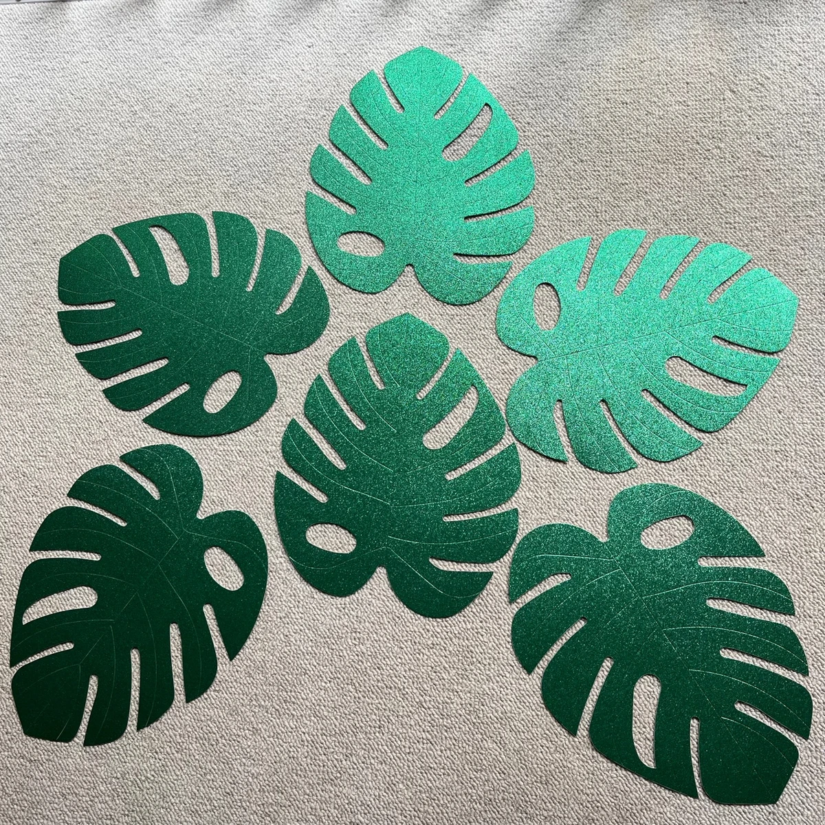 Guests will not want to 'leaf' your safari-themed party when you decorate it with these Palm Leaf Decorations! This tropical decoration is an easy way to bring your child's safari birthday party to the next level, and it can even be used as a photo booth backdrop! Hang these palm leaf decorations from the ceiling to transform your safari party into a tropical getaway! These green shiny palm leaves are suitable for decorating your house, classroom as well as your office. Great for Hawaiian themed parties, beach parties or jungle parties. 35cm x 30cm each What's in the box 6 x Glitter Tropical Palm Leaves |