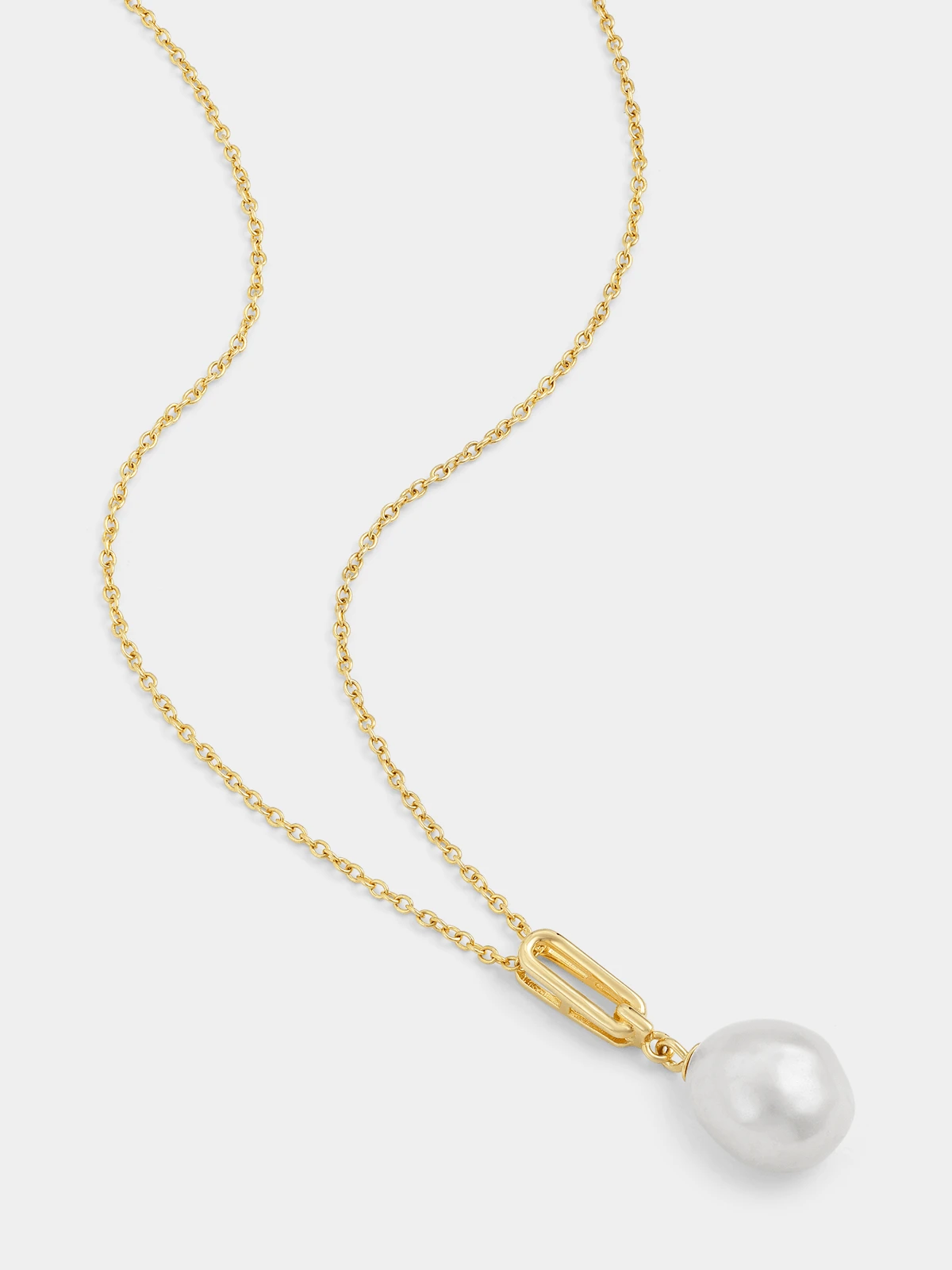 Gold Plated Sterling Silver Freshwater Pearl Paperclip Pendant