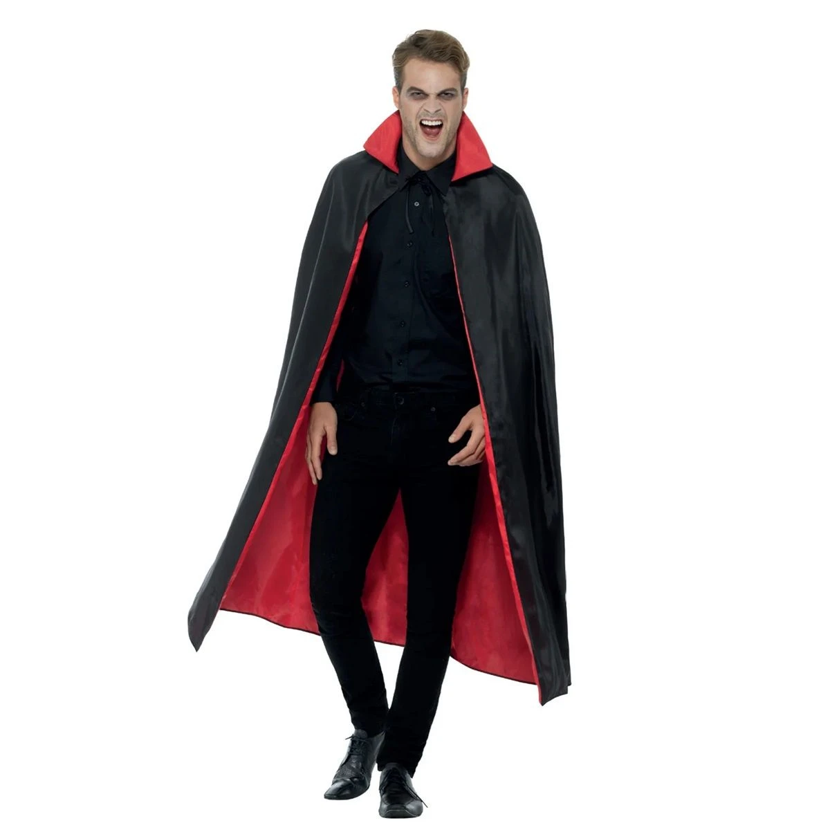 Get ready for some serious spooky fashion with our Halloween Reversible Black & Red Vampire Cloak! Whether you're going to a costume party or just feeling a little vampy, this 120cm cloak will add some playful flare to your look. Switch between black and red for a versatile Halloween fashion statement. Size: 120cm Long What's in the box 1 x Vampire Cloak of Selected Pack Size |