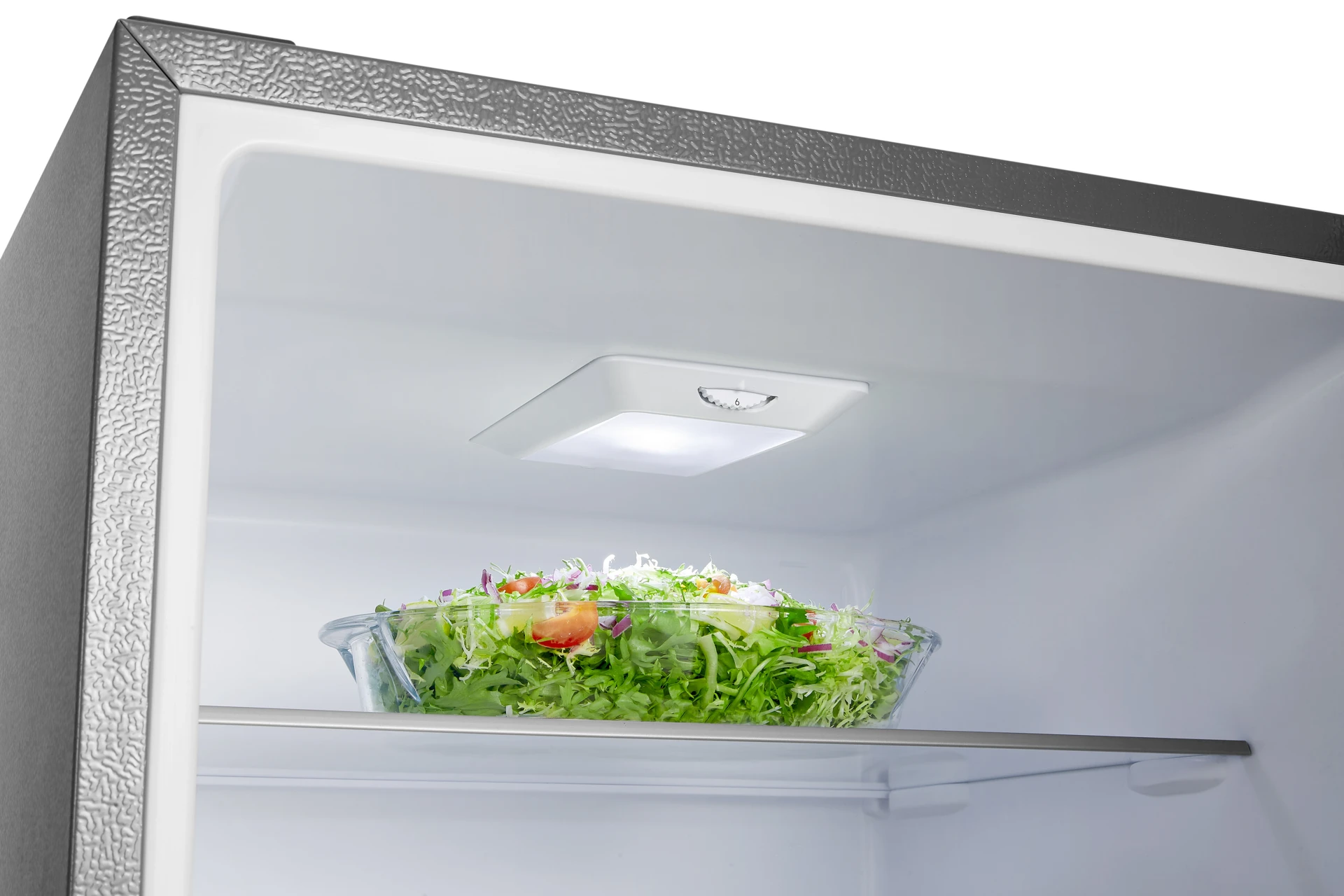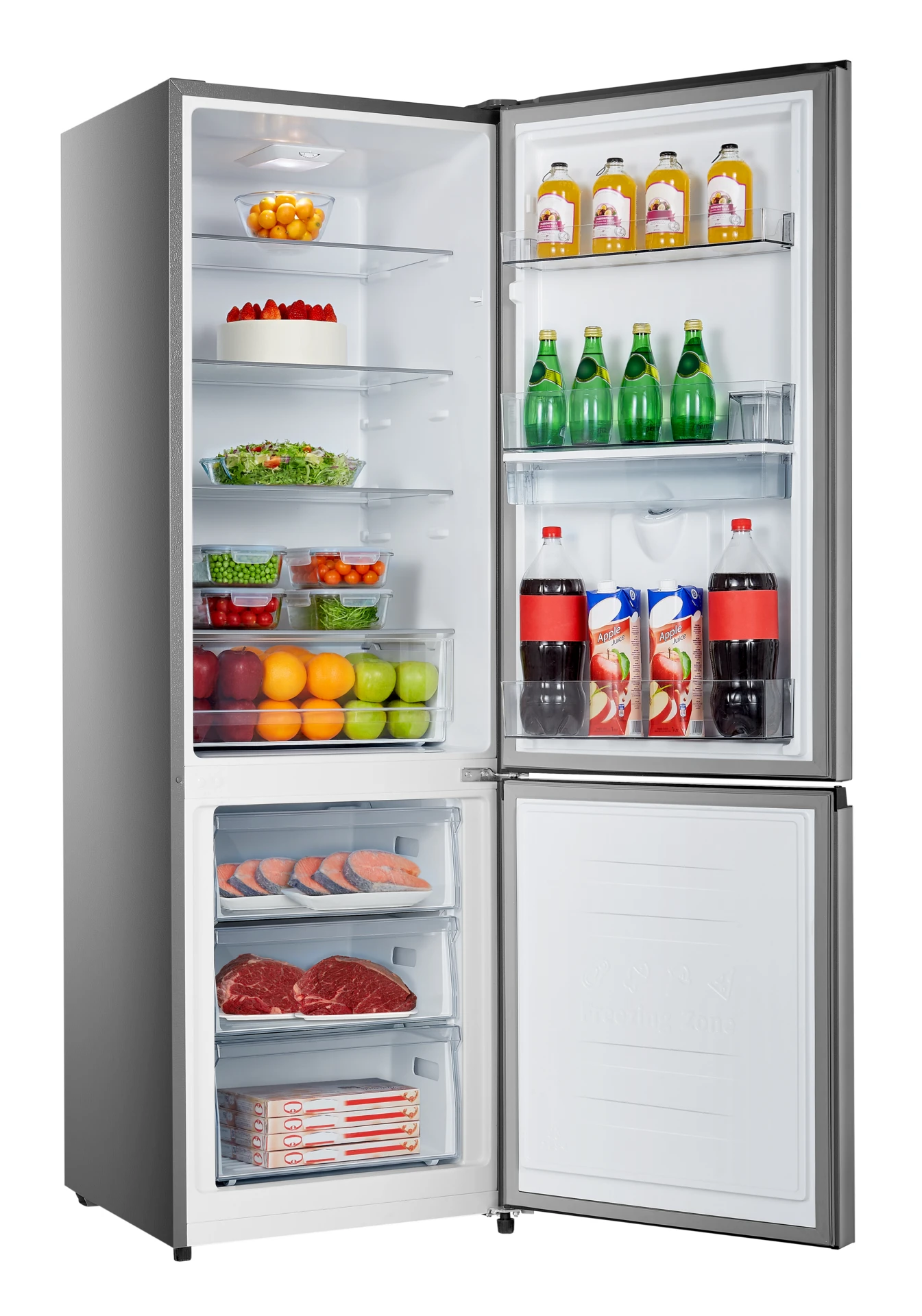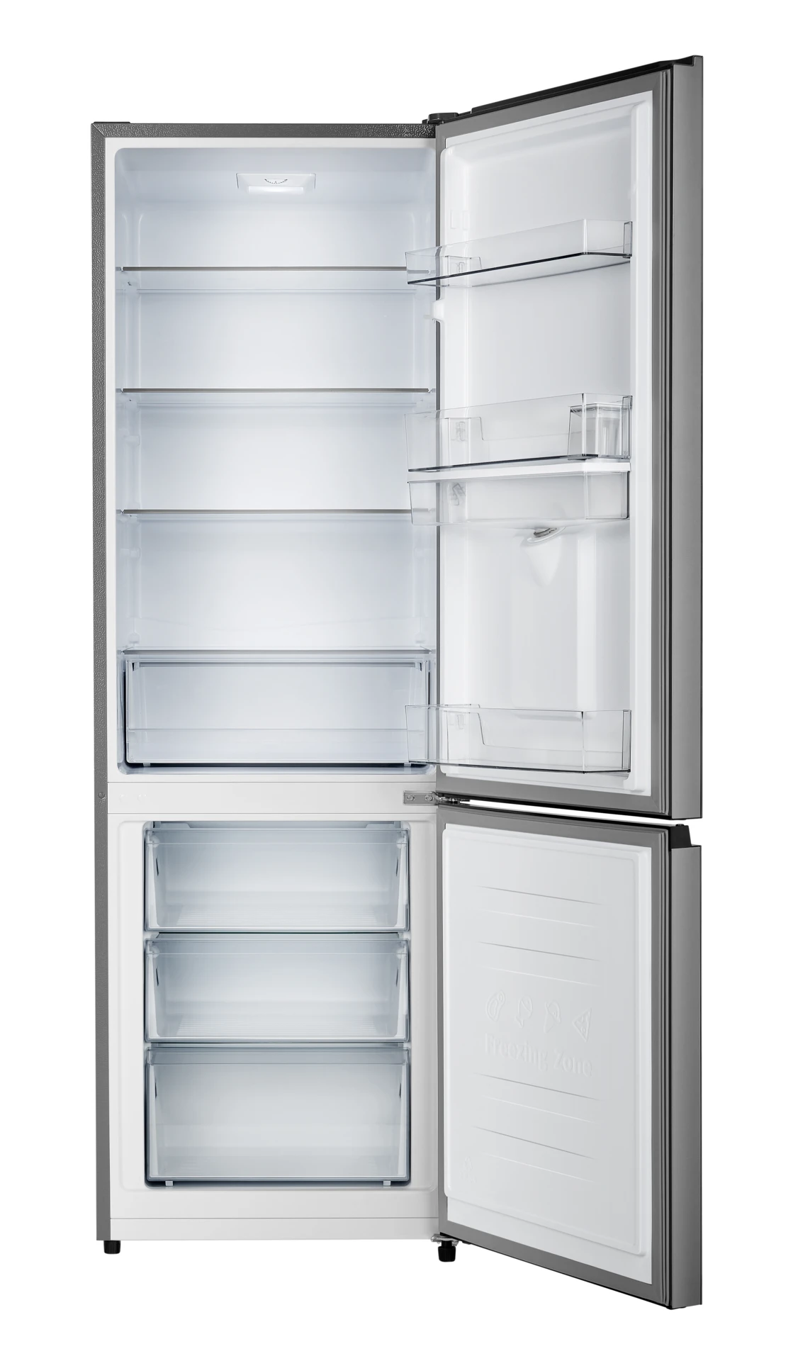 The Hisense 347 L Bottom Fridge Freezer with Water Dispenser offers ample storage and practical features. With 347 L net capacity, it provides enough space to store all your groceries. The ultra-slim water dispenser and frostless technology provide convenience. Soft LED lighting ensures clear visibility, while low-noise operation ensures a peaceful kitchen environment.