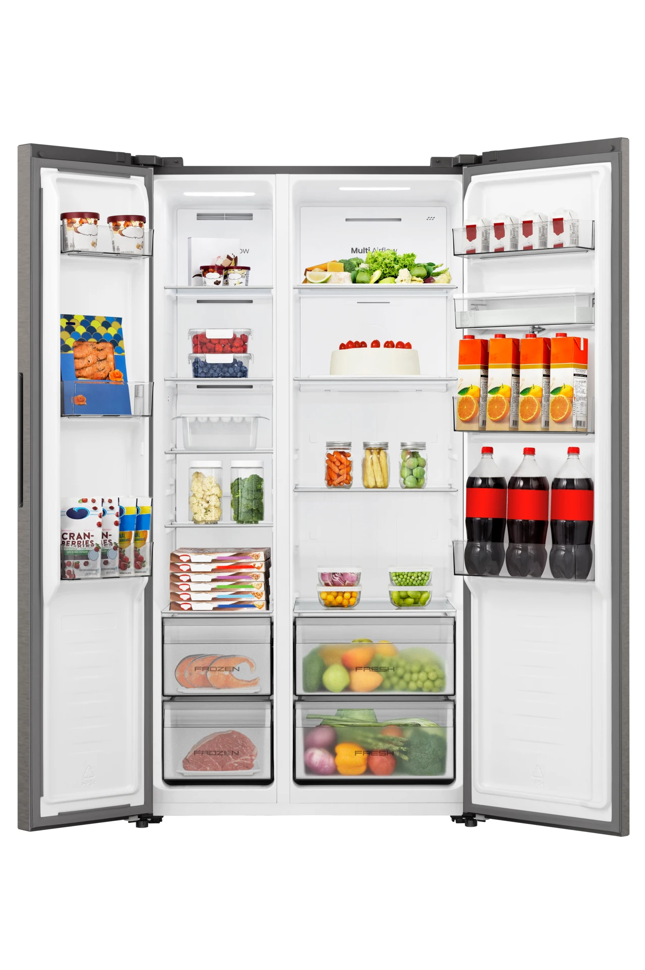 Net volume: 541L Energy class: A+ Cooling system: Total no frost Inox sleek modern appearance Water dispenser Internal control display Inox 4 + 1 Year Warranty On Registration |