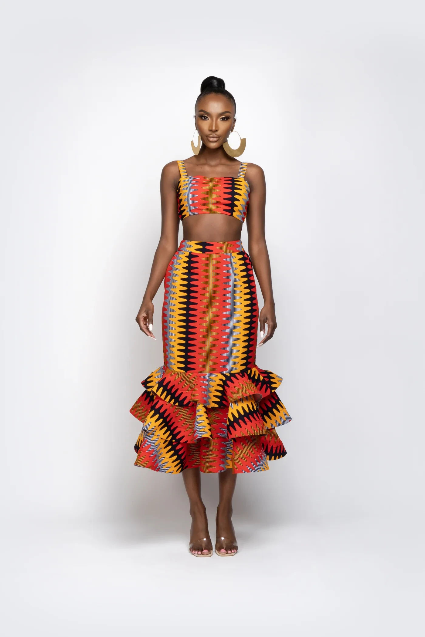 This Igagasi 3-Step Skirt can be worn with many styles of tops and can be worn all year round with boots, heels, or flats. |
