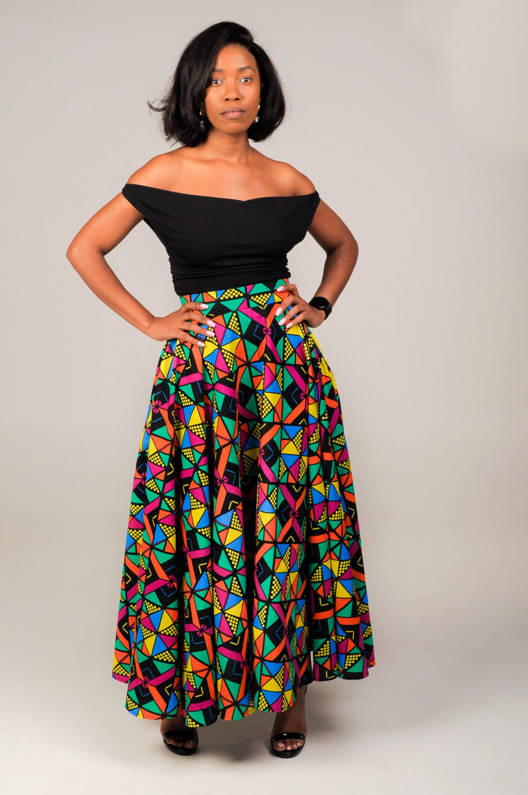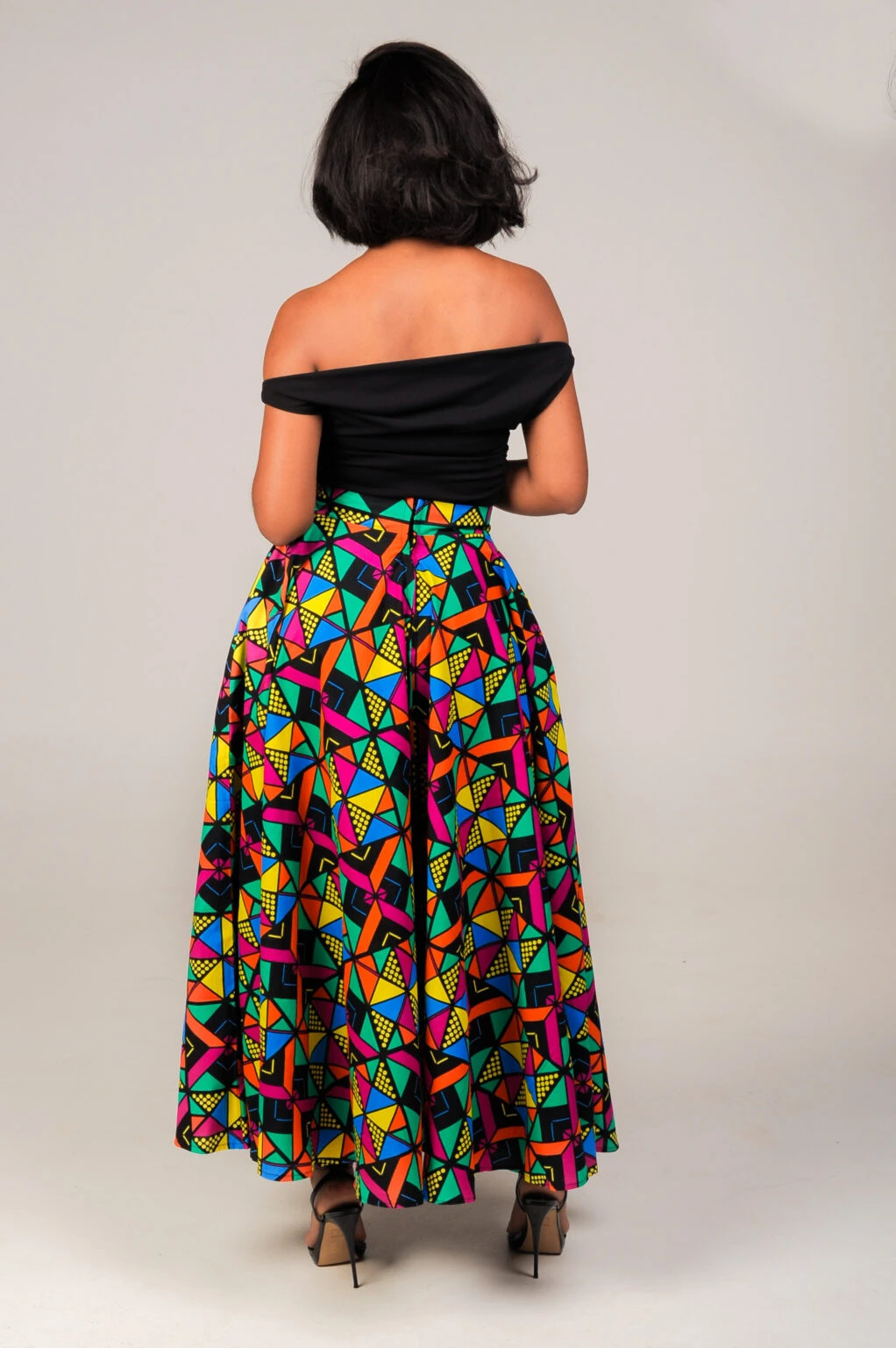 This Imibala African Print Flare Skirt can be worn with many styles of tops and can be worn all year round with boots, heels, or flats. |