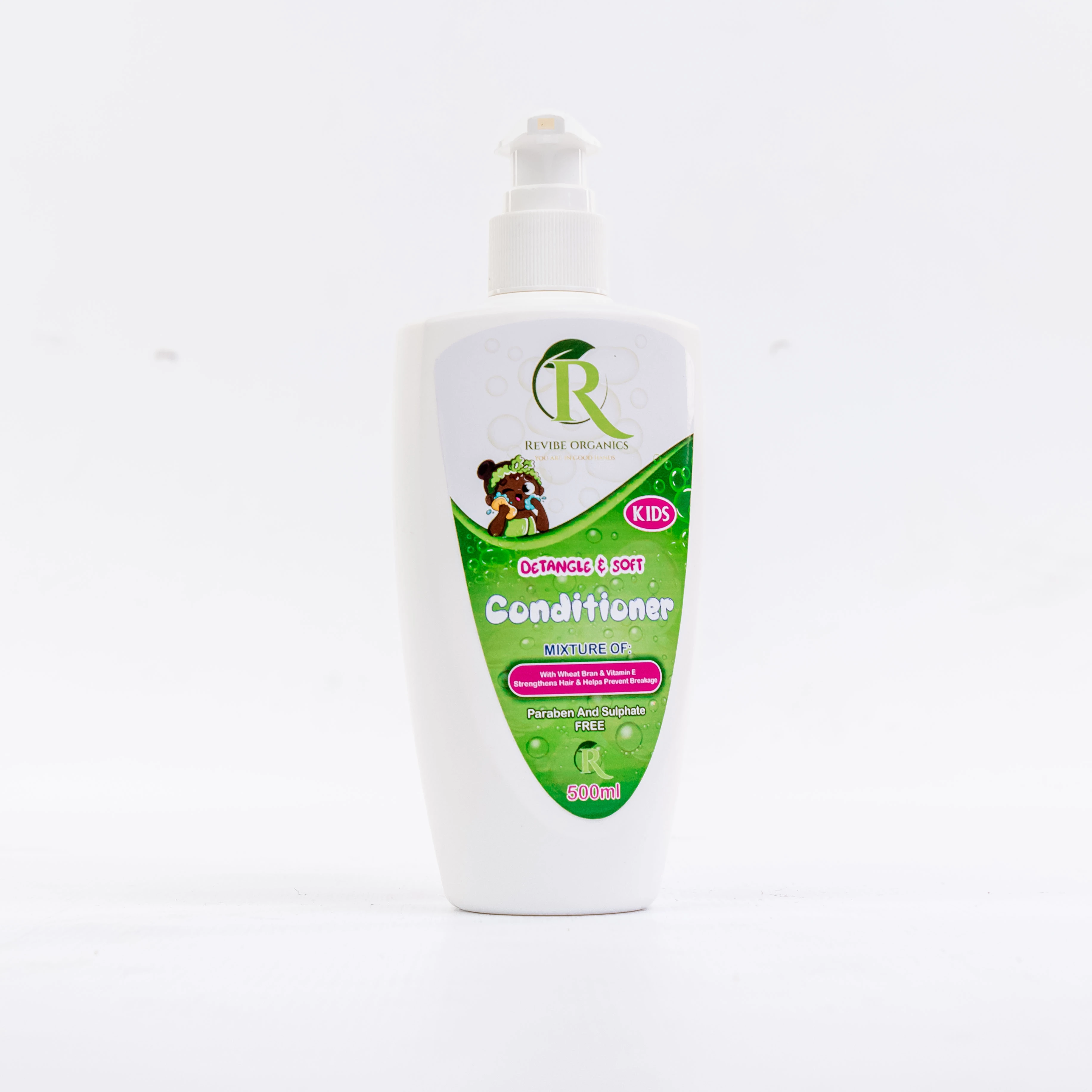Kid’s Conditioner Size: 500ml Gentle Care for Little Curls & Coils Make hair care a breeze with Revibe Organics Kid’s Conditioner, a tender, ultra-nourishing formula made just for delicate strands. Enriched with shea butter, coconut oil, and baobab oil, this lightweight conditioner softens, moisturizes, and effortlessly detangles even the most stubborn knots. Safe for kids of all ages, it leaves hair soft, shiny, and easy to manage, all without sulfates, parabens, or harsh chemicals. As gentle as a mother’s touch and ideal for daily use to keep your little one’s hair healthy and happy. How to Use Our Kid’s Conditioner