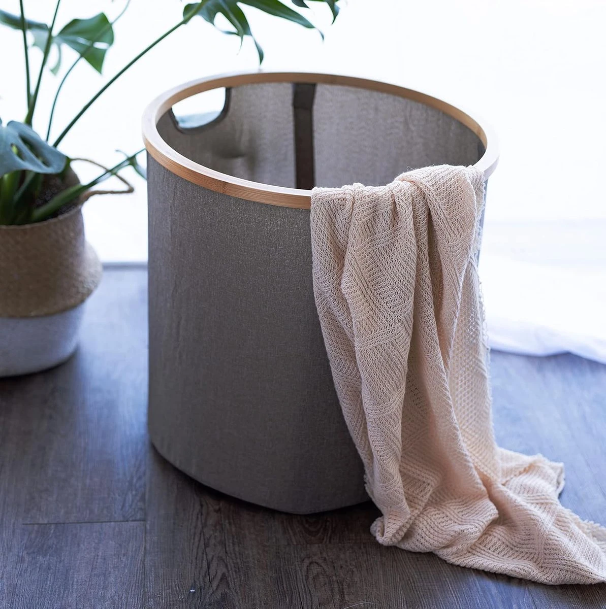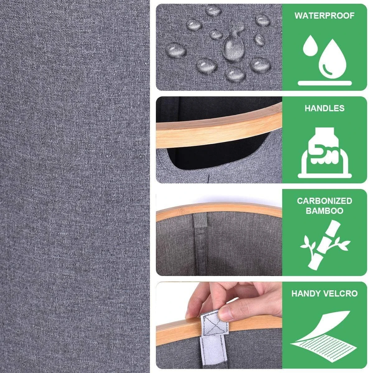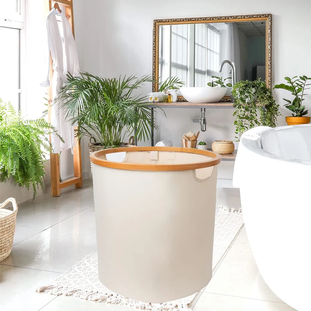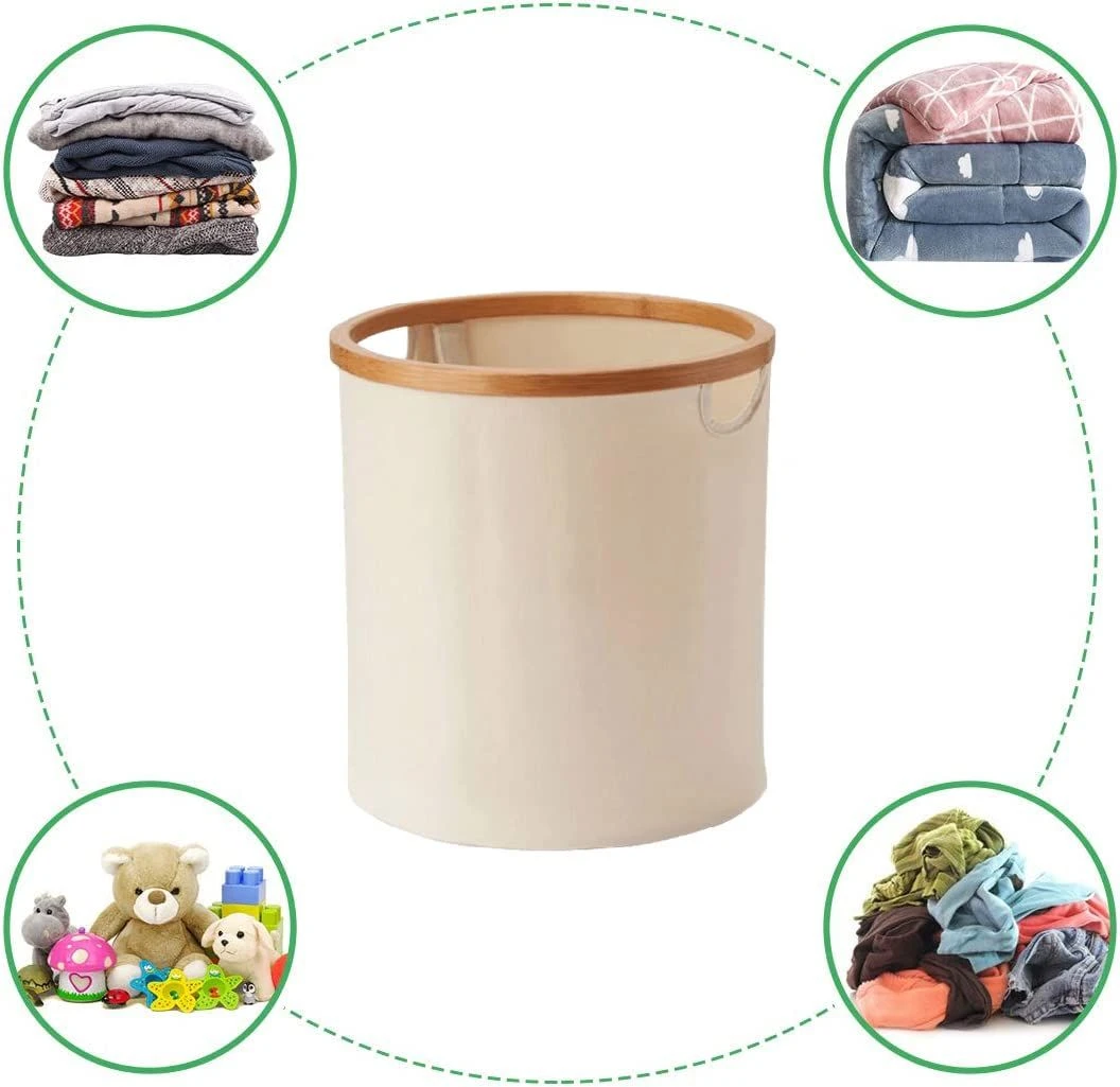 Features: - Made of premium high-density oxford and carbonized bamboo, plus compact stitching, staying in good condition without wrinkles or tearing even after many times using. The bamboo laundry basket frames are not easy to break, and become smooth after carbonization treatment, which will not hurt your hands during use. - With 4 special support bars, it can stand up straight. Don't worry about collapse or distortion, you can fold this bamboo laundry hamper and store it in a drawer after you finish washing clothes. Fashionable look would be also a part of your house. - Collapsible design, if you want to fold it down flat for storage, it's really easy to do and doesn't take up much space; simple to assemble, pull up the hamper, lock the 4 support bars into place with - a Hook and Loop tape. Your laundry basket will be in an upright position and can be used directly. - Not just be a cloth laundry hamper, it's also a basket/ bin with lid for toys, books, lines, groceries etc., to keep the bathroom, bedroom, living room clean and tidy. At the same time, laundry basket can also be used for supermarket shopping to take your daily necessities back. What's in the box 1 x Laundry basket |