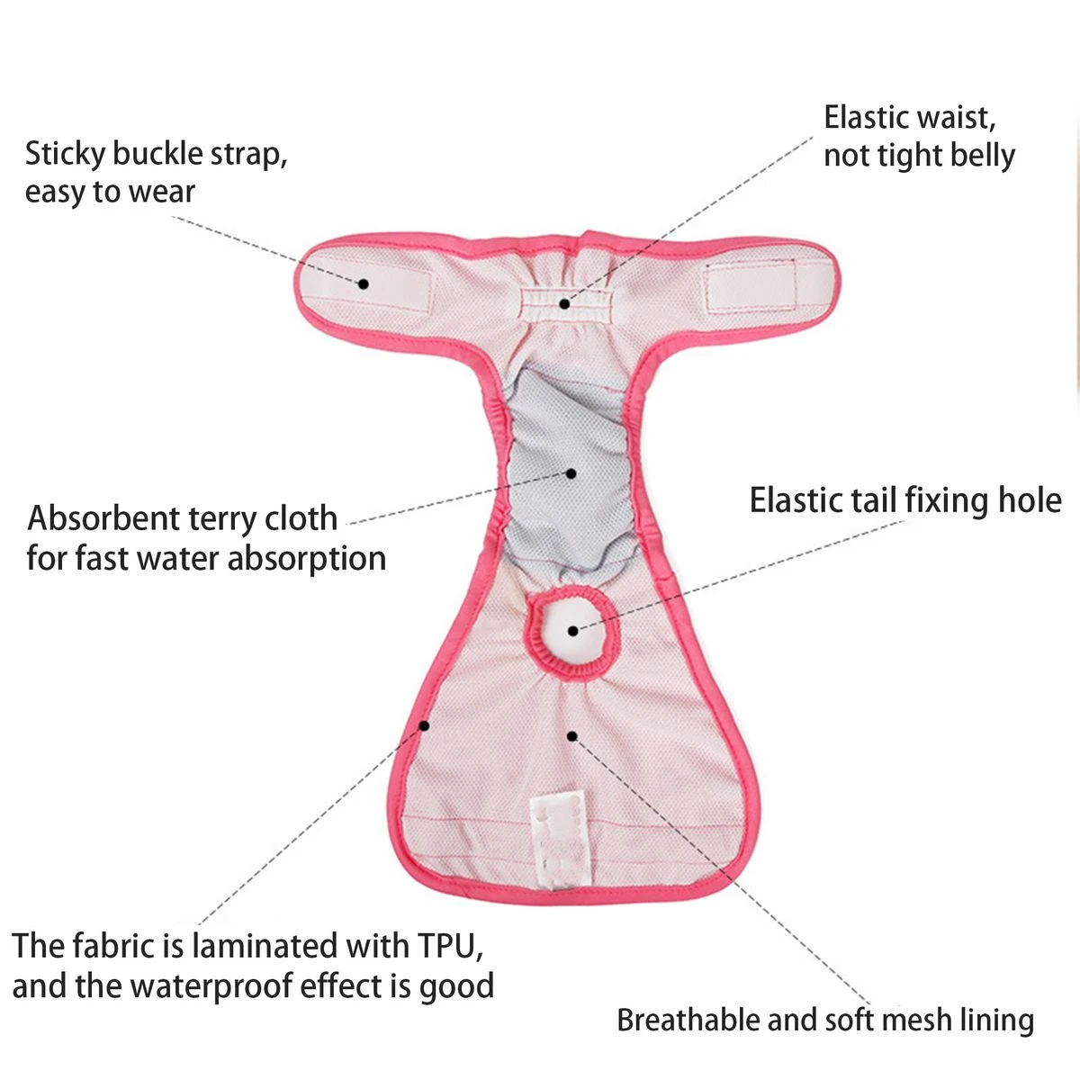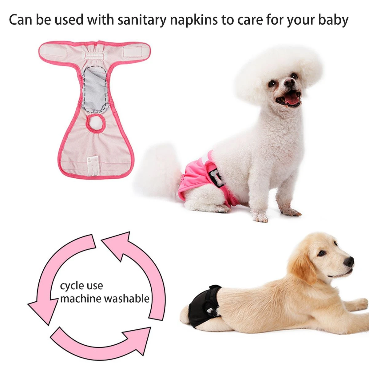 Environmental friendly, this diaper is washable and reusable. Made of soft and breathable mesh polyester and terry cloth inner for safe and comfortable wear. Fine workmanship, easy to wear and tear. Sew- in super absorbed pad, you dont need to change diaper too often. An way to help protect dog from harass and protect floors, and home furnishings from damage, caused pet urine. Features: - Easy to use diapers -: Female puppy diapers, an ideal way to help protect dog from harass and protect floors, and home furnishings from damage, caused by pet urine.Puppy panties, elastic band and elastic tailhole for better fit. Female wraps for dogs, environmental friendly, this diaper is washable and reusable. Puppy panties for dogs in heat,it can decorate your lovely dog in an elegant way.Washable diapers for female dogs, sew-in super absorbed pad, you dont need to change diaper too often. Solution to troubles -: The pet's physiology period also means that the owner is also worried about the incident. The sexual harassment of other male dogs also plagues the owner. The pet physiological pants help you solve this trouble. care for pet health -: Original 4-layer protection, breathable lining, absorbent layer, waterproof layer, soft fabric layer, 4-layer system to care for pet health Perfect Design -: Elastic elastic band, no dog's belly, close fit Hook & Loop paste, easy to wear, firm and does not hurt the skin, no stains Elastic design at the end, no tail, more close-fitting, more intimate Material -: The outer fabric is made of polyester material. This manner belt can be easily laundered at home and is easy to dry Just wrap it around the waist of your dog's waist and secure it with Hook & Loop. Comfortable wearing -: It can be securely attached and adjusted to your size.Elastic band around the torso so so it won't tighten your stomach. Rubber gathers prevent leakage.The interior is made of breathable mesh material that prevents stuffiness and is comfortable.4 layers of absorbent fabric in key areas. You can wear this one piece or wear it over commercially available clothing style: Casual Size: M, L, XL color: black, pink Material: 100% polyester Note: Since the size above is measured by hand, the size of the actual item could be slightly different from the size above. Due to the lighting effects, monitor settings, etc. There could be some slight difference in the color tone of the pictures and the actual item. What's in the box 1 x Piece Dog underwear |