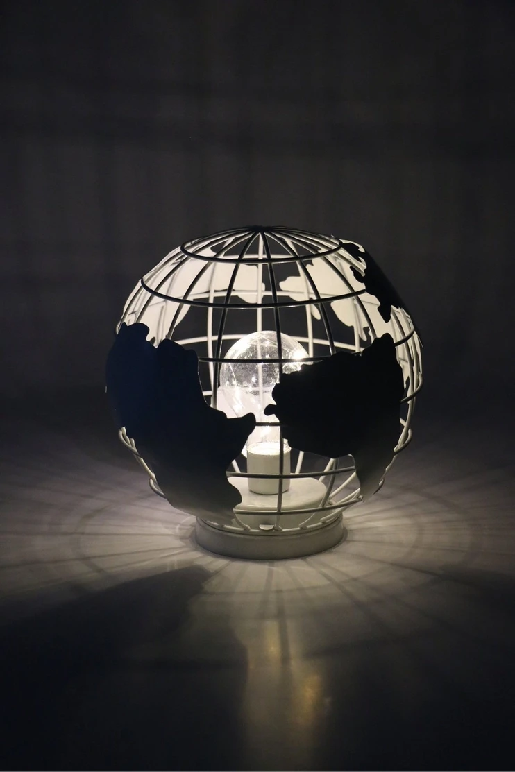 This battery operated metal globe lamp is perfect as a night light or simply as a decorative accessory in the room. Mr Price Home is NRCS (SABS) compliant.3 x AAA batteries required.Batteries not included.Measures 9.5Lx19.5Wx20H cm. Dimensions: L21xW21xH21 cm |
