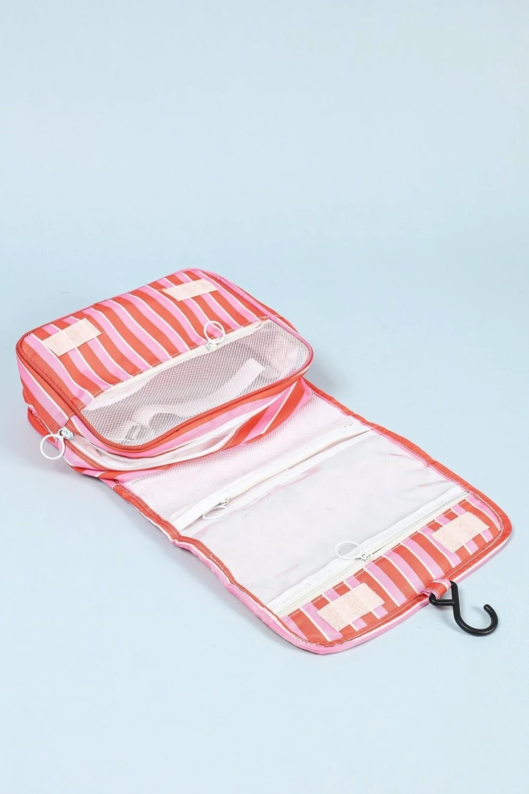 Add a pop of color to your travel routine with this vibrant, striped toiletry bag. The convenient hook lets you hang it anywhere, keeping all your essentials within reach. With multiple zippered compartments, everything stays neat and organized, so you can spend less time searching and more time exploring. Dimensions: L19xW10xH24 cm Fabric Content: 100% Polyester |