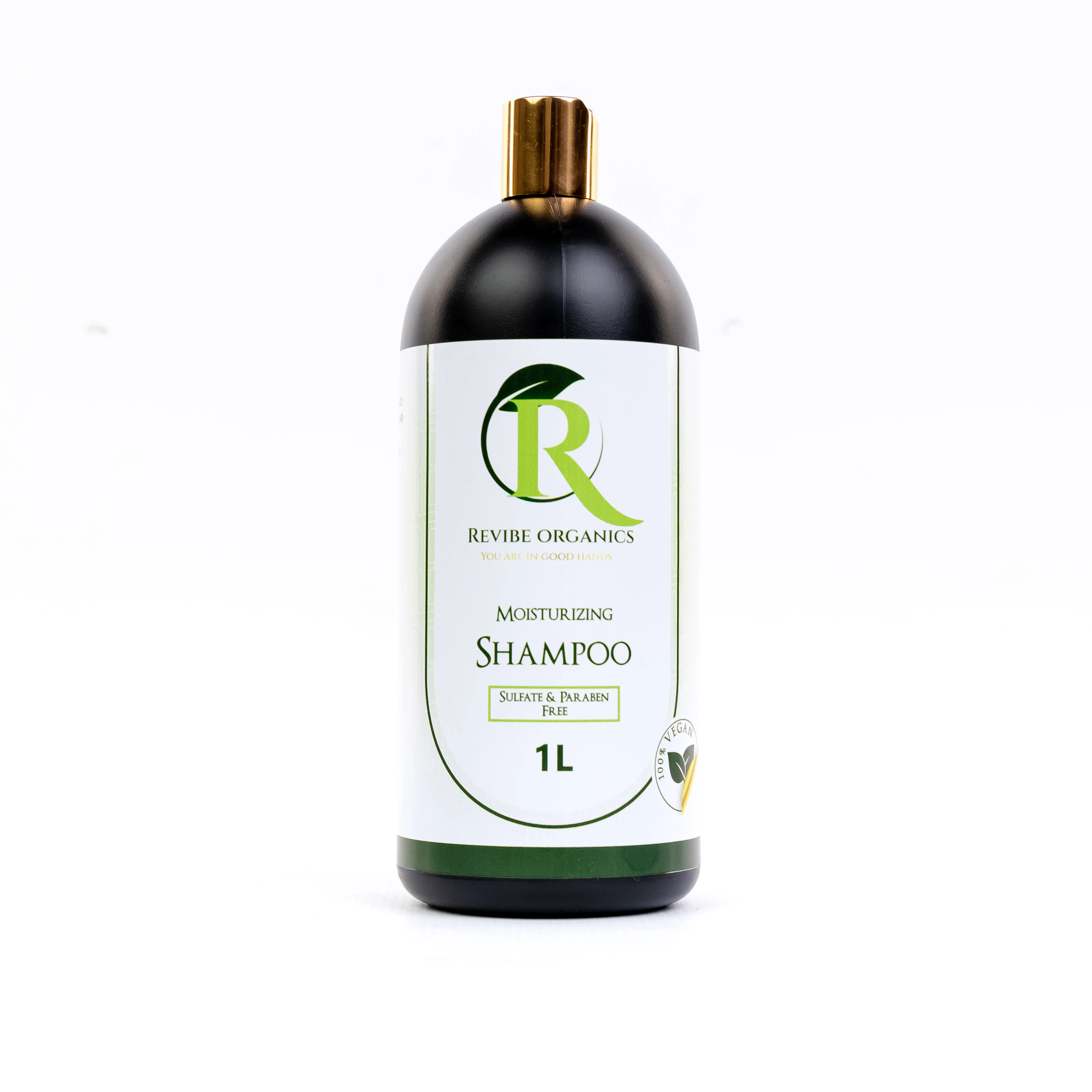 Moisturizing Shampoo Size: 1L Hydrate. Strengthen. Protect. Enjoy the nourishing power of Revibe Organics Moisturizing Shampoo in a convenient 1L size, perfect for everyday use at home or on the go. This creamy, organic formula blends high-quality oils, vitamins, and herbal extracts to gently cleanse while deeply moisturizing the scalp and hair. Specially formulated for low porosity hair, it helps reduce hair fall and promotes a healthy, vibrant mane. How to Use Our Moisturizing Shampoo