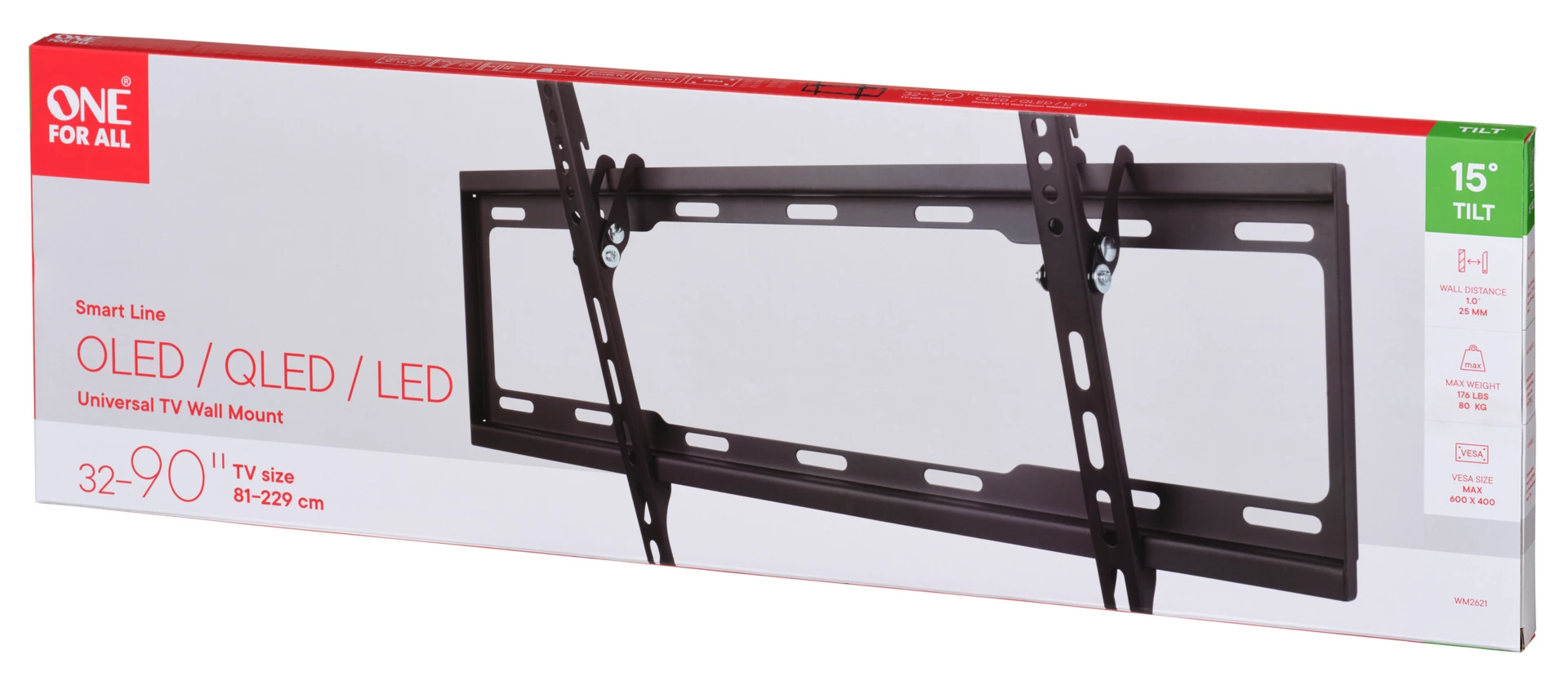 Suitable for all 32" to 90" TVs 15° tilt feature Easy installation Mounting materials included VESA size up to 600 x 400 |
