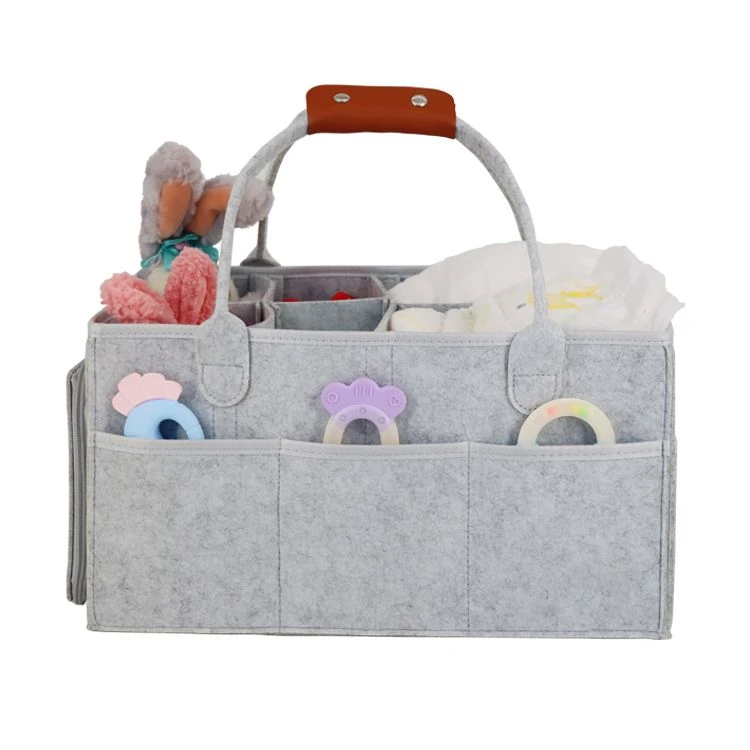 The Parker Baby Diaper Caddy Organizer is a patented organizer designed for all your baby essentials. It accommodates diapers, wipes, clothes, toys, changing pads, and more. The removable organizer insert allows it to double as a toy storage bin or nursery basket. Complement your nursery decor with our neutral diaper organizer. Its sleek and functional design looks great on changing tables, dressers, or beside diaper pails. The caddy features sturdy outer pockets for additional baby storage, keeping everything within easy reach during diaper changes. With a long, durable handle, this lightweight changing table organizer is easy to move around. Use it as a car caddy or car organizer, making on-the-go parenting a breeze. Store breast pump and accessories, baby bath products, or keep it bedside for convenient access during late-night feedings. It's the perfect companion for your parenting journey. The Parker Baby caddy makes a thoughtful and practical baby shower gift. It's an essential item for every baby registry, offering new parents a stylish and organized solution for diaper changing. Give the gift of convenience and style to expecting parents. Crafted from soft felt, our diaper caddy is built to last. The high-quality materials ensure durability and easy maintenance. We stand behind the product with a satisfaction guarantee, making your purchase risk-free. Elevate your diaper organization with the Parker Baby Diaper Caddy - the ultimate diaper bag essential and nursery organizer. What's in the box 1 x Baby Diaper Caddy 1 x Learning book |