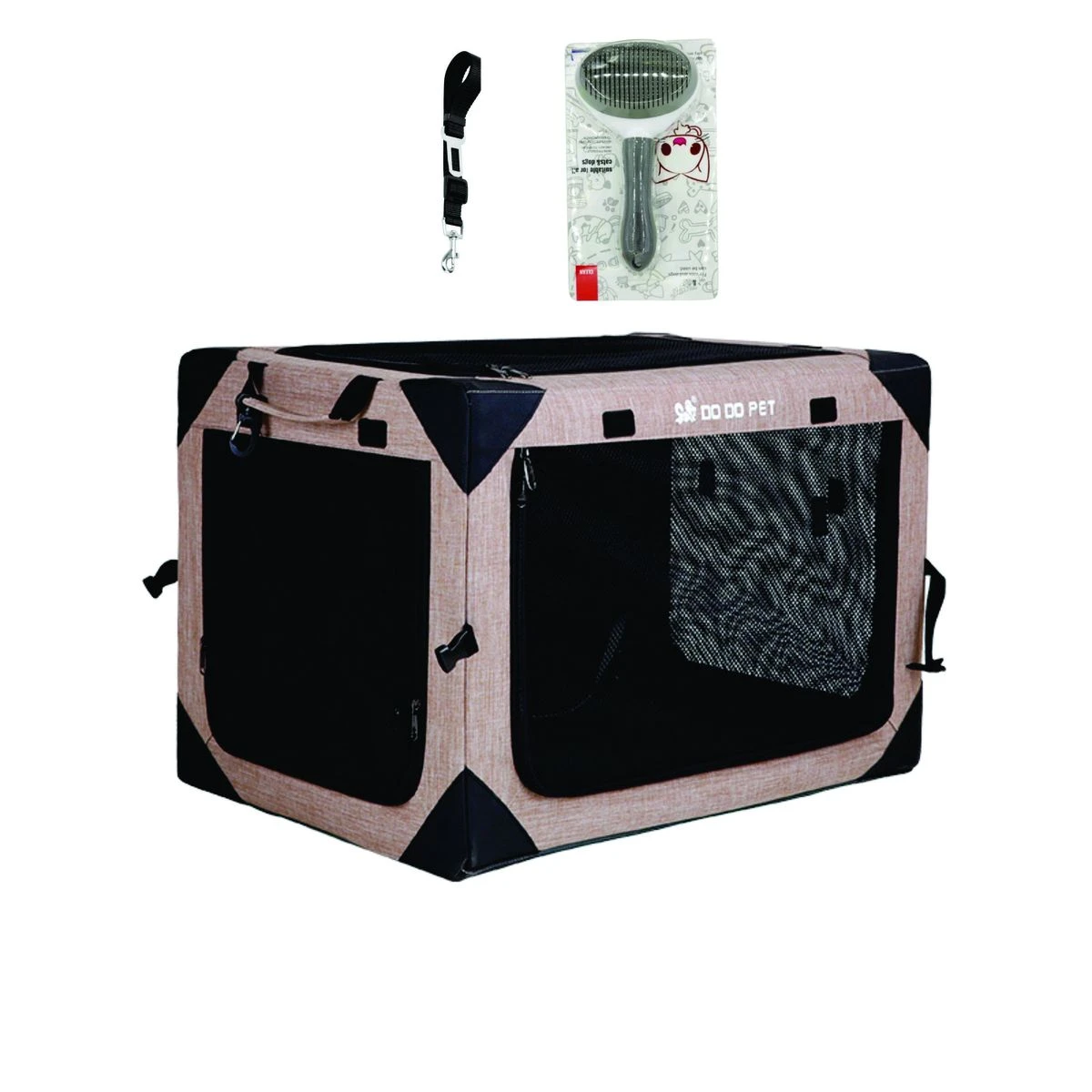The foldable dog crate is machine washable and very practical. The load capacity is 15 kg, but this does not mean that your 15 kg pet will fit. Please check the measurements to determine if your pet is enough to fit in. Foldable Soft Portable Dog Crate You just need to buckle or remove the two buckles to achieve installation and storage, fold up and down in seconds, no tools required. Sturdy Steel Frame & Durable The collapsible dog crate features a strong but lightweight steel tube design, which can be folded and unfolded in a snap, made of durable oxford fabric and high quality polyester, scratch resistant and well constructed. Four-sided mesh windows provide good ventilation and visibility, and ensure the pet does not have sultry heat. Comfortable pet delivery room with extended grid for observation and constant care. Grooming your pet can enhance mutual communication between you and your pet. Our pet brush is suitable for all breeds and coat types. With Depets dog and cat shedding brush, your beloved pet will enjoy the time of grooming. What's in the box 1 x Pet Carrier 1 x Harness Seat belt 1 x Cat Grooming Comb |
