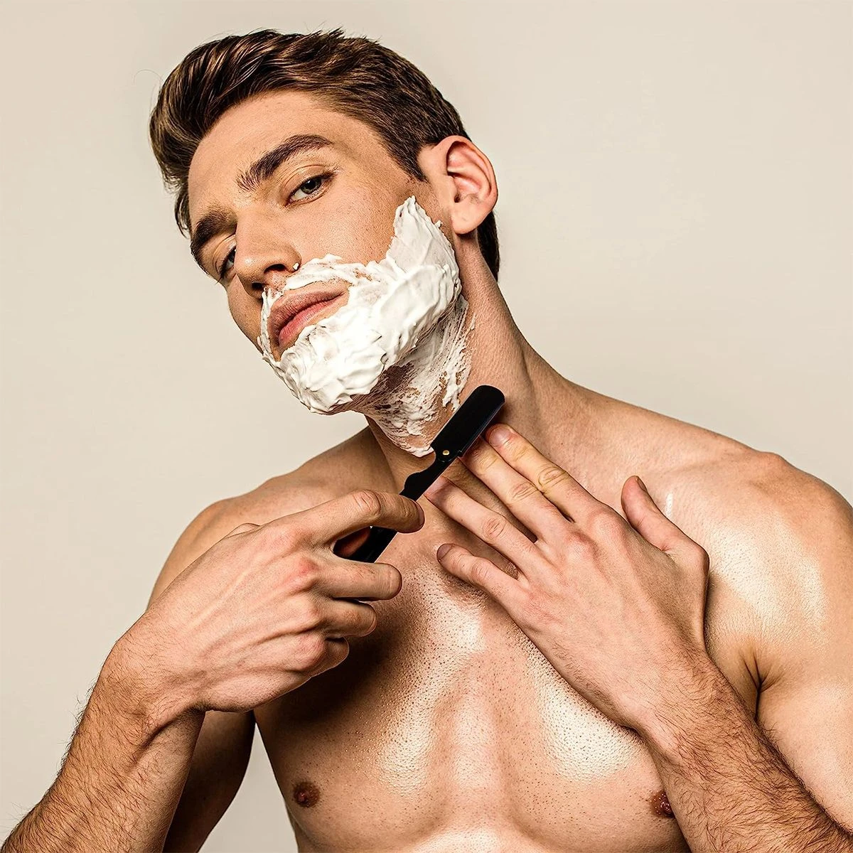 Good quality of fabric but cheap We provide good quality products at affordable prices. Worth your purchase. Premium Quality Each blade is individually wax paper wrapped, that will outlast through many shaves. The professional quality Razor can be used both at home and in barbershops. Smooth Grip It features a flip-able blade cover with a comfortable metal grip, allowing easy maneuvering and a close shave. Start with gentle strokes and slowly work your way around to keep a steady motion and pressure. Durable The black matte finish over the stainless steel body helps deter rust for long-lasting performance. Hence, this razor provides a perfect shaving experience. Ergonomic Design A classically styled straight edge barber razor made of brass with a chrome finish offering a reliable and silken shave every time Safety Tips- For Safe Usage At All Times, Make Sure That The Blade Is Locked Securely Within The Safety walls and the cap is in place. Be sure to gently squeeze the protection cap before closing it to ensure a tight and secure grip. If the walls become loose with time, push them with a small amount of pressure when placing the blade and lock the cap. Specifications: - 4 colors: silver /black / gold / colorful - Elite Style - Swing lock blade insert, razor is exposed 25% higher designed for smooth shaving experience. - Medium weight razor, Comfortable strong grip handle, Handmade for best performance. - If there is any problem or you are unsatisfied with our products , just contact us and our service team will solve your problem within 24hours, we support new replacement without any fee. What's in the box 1x Razor set |