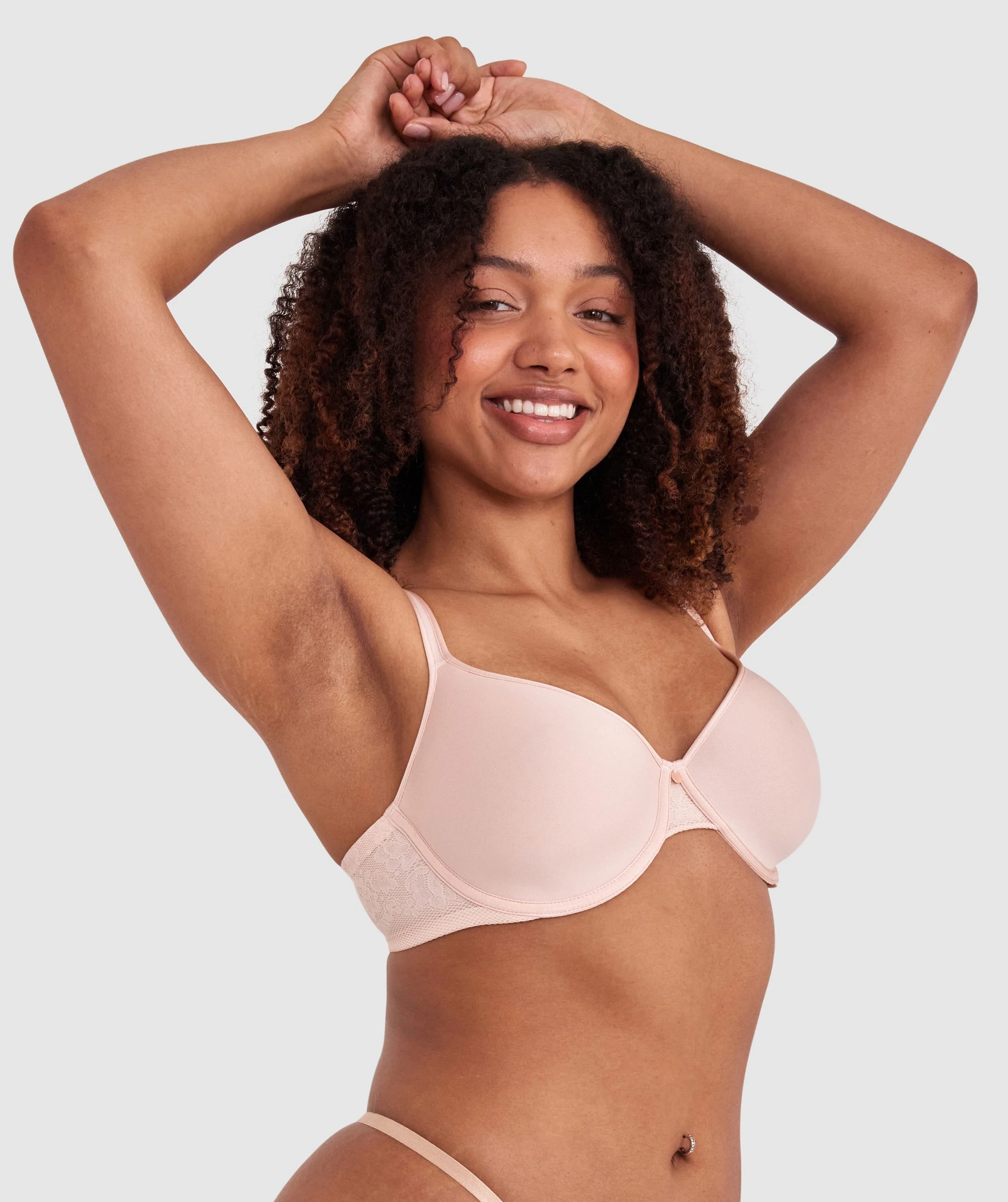 Designed in ‘Spacer fabric' with lace and rose gold feminine touches, Pure Body by Bras N Things is incredibly breathable, lightweight and cooling for everyday wear. Features: - Contour cups - ‘Spacer fabric’ cups. This innovative fabric is constructed with a middle spacer filament layer that allows air flow for moisture and heat to be drawn away from the body. This fabric is incredibly breathable, lightweight and cooling for everyday wear - Smooth, natural shape - Lace wing, rose gold hardware - Adjustable straps - Hook and eye fastening Style #: 00891803 Material: Main: 78% Nylon 22% Elastane / Lace: 88% Nylon 12% Elastane / Cup: 92% Polyester 8% Elastane |