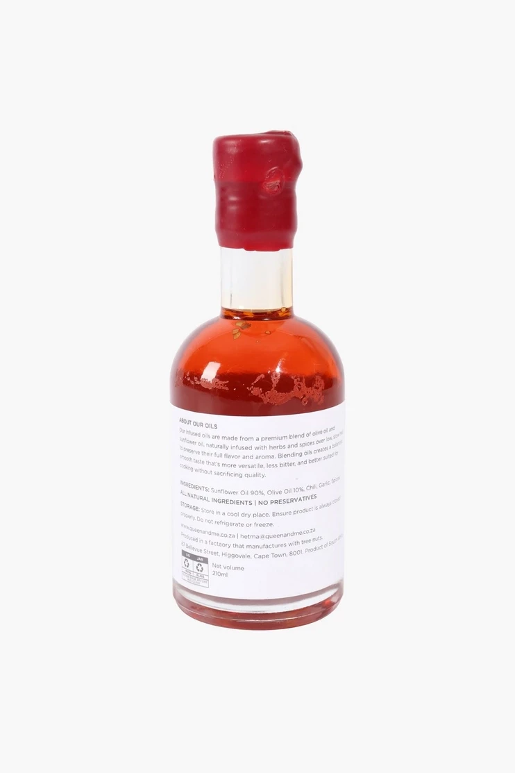 Elevate your culinary creations with the bold and aromatic Queen & Me, Fragrant Chilli Oil from Mr Price Home. Perfect for adding a zesty kick to your favorite dishes, this versatile oil is a must-have for any kitchen. Whether you'redrizzling it over salads, marinating meats, or simply adding a dash to your stir-fries, this fragrant chilli oil will bring a burst of flavor to every meal. Its vibrant multi-color appearance adds a touch of elegance to your kitchen shelf,making it as beautiful as it is delicious. Perfect For :