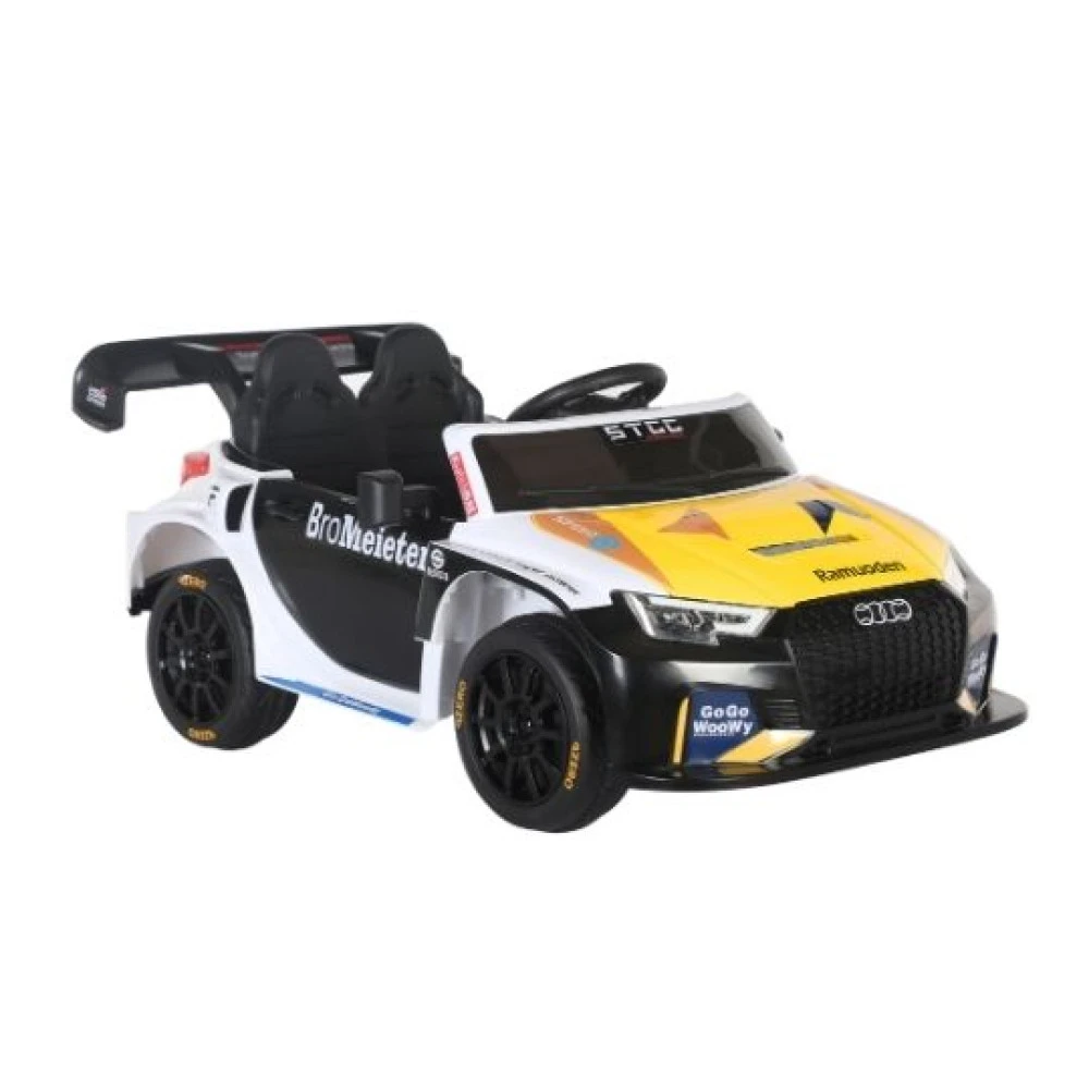 6v 4.5A battery operated2.4g Remote controlUSB inputMusic playeravailable in yellowSize: 100 x 54 x 50Suitable for kids aged 2 to 5 years |