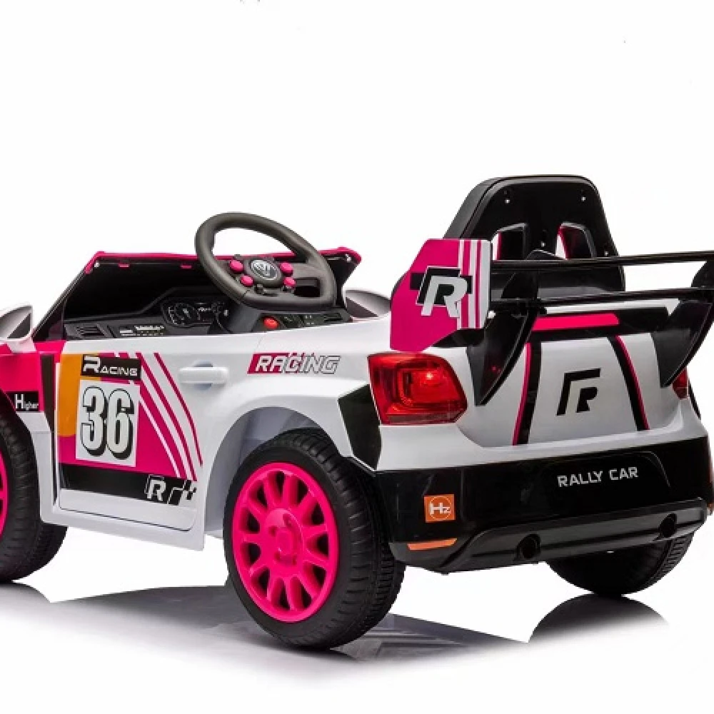 12V Battery operated ride on car 2 motors push button start Power display Sway function 2.4g remote control music player USB input AUX input opening doors 2 way safety belt LED head and tail lights size: 116 x 65 x 50 cm available in red or pink |