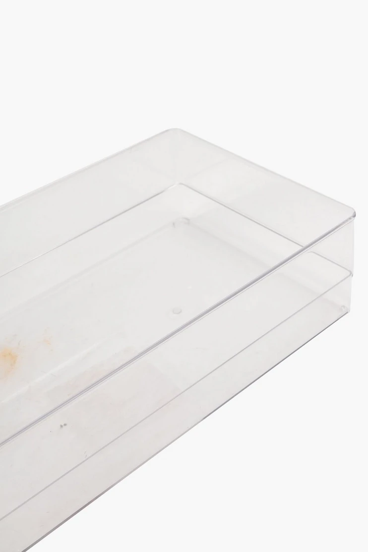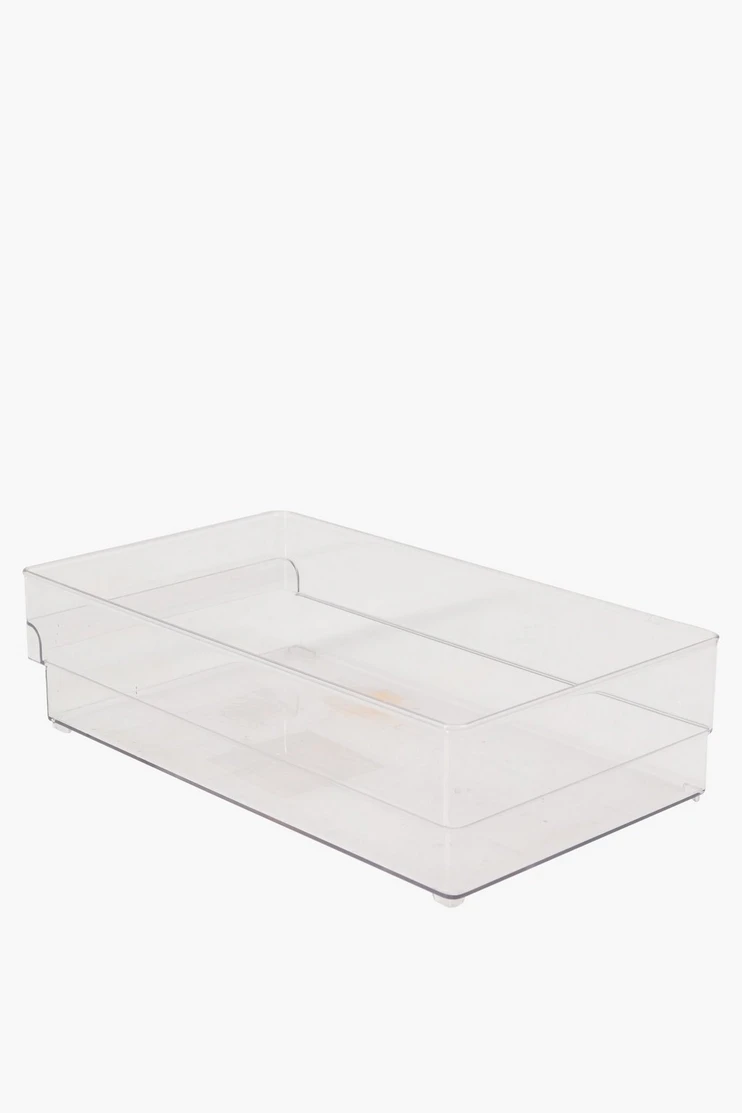 Made from sturdy plastic, this storage solution will help organizer your cupboards in an easy and neat way. |
