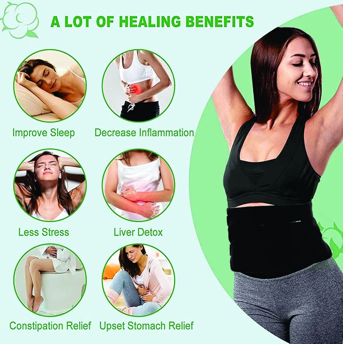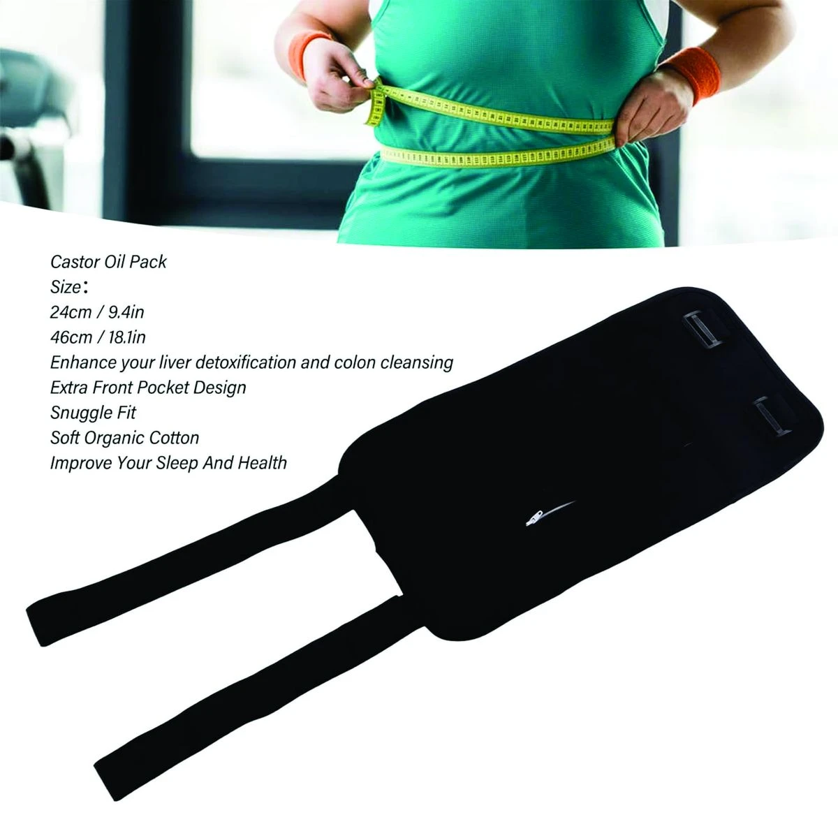 Castor oil packs can enhance the body's natural liver detoxification, lymphatic detoxification and colon cleansing functions, effectively improving insomnia, digestion and absorption and bowel movements and other physical problems, making our lives better. Organic Castor Oil Pack Kit is reusable, mainly helps to detoxify and cleanse the body, reduces inflammation, intestinal leaks, constipation and bloating, provides gentle care of the body. Castor Oil Wrap Made of soft fabric with eco-friendly and healthy PUL layer for less mess, elastic nylon strap for wrapping and securing, safe, soft and hypoallergenic. The gentle pressure of the castor oil wrap acts as a pump for the lymphatic drainage system, and the gentle compress material stimulates skin and internal reflexes, moving you from a state of stress to a state of rest and digestion. Castor Oil Pack Compression is designed to fit the normal size of an adult liver and fits most bodies. The , soft strap your curves so you can sleep or work out in comfort every day. What's in the box 1 x Castor Oil Pack Wrap |