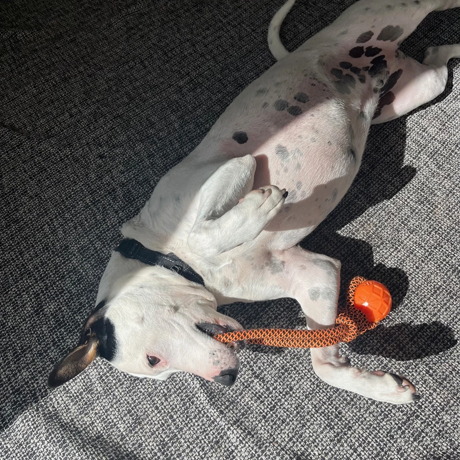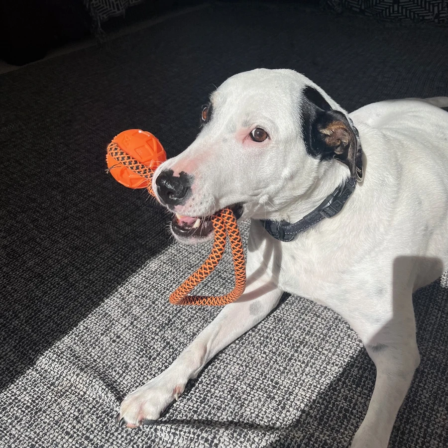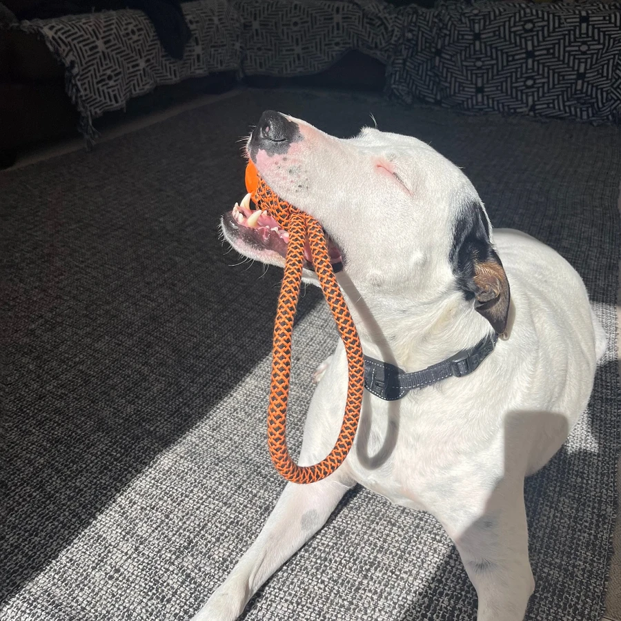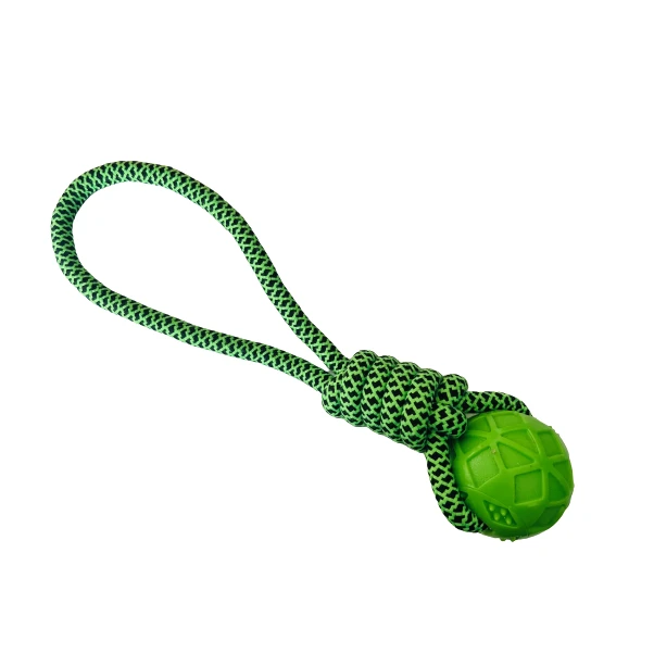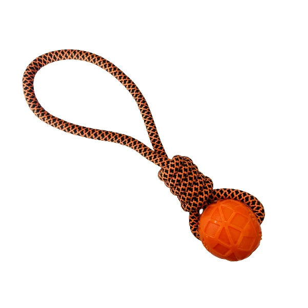 The perfect toy for dogs that enjoy games of tug-and-pull. Fun to toss, chew and fetch, the toy provides hours of healthy play for you and your pet. Regular chewing gently cleans teeth and massages gums, reducing plaque build-up and preventing gum disease. Made from biodegradable materials, it is machine washable. Size: 40 cm - Perfect for your big boy, or girl! Features: - encouraging playful activities. - safe, non-toxic, excellent hardness. - effectively helps clean the teeth, massage gums and tongue, reduce breeding of dental plaque and tartar, thus preventing a variety of oral diseases. What's in the box 1 x Rope Ball Tug Toy for Dogs |