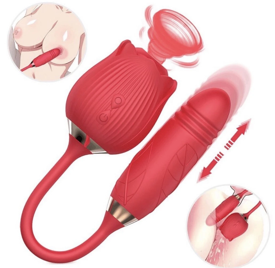 Delicate Thrills: Silicone Clitoral Sucking Rose with Thrusting Vibrator Egg for Intense StimulationThe famous TikTok raved sucking rose sex toy has a new addition! The Rose II Vibrating Clitoral Stimulator and Vibrating Thrusting Egg is the newest sensation in adult pleasure! Unique & Elegant Rose Design ā The vibrator consists of a rose-shaped suction and an egg-shaped vibrator. This Rose will be a girlās best friend and with with benefits! Just like the original, the soft, supple and powerful sucking rose arouses your clitoris. While the thrusting phallic egg takes care of vagina penetration for a dual stimulating sensation. Use all 10 functions of vibration and sucking action to find which one makes your pussy happy! Waterproof for play around water. Just a quick note, please make sure you use only water based lubricants with its silicone and ABS materials. This sex toy is, easy to charge thanks to the USB magnetic connect. Details: Material: Body safe silicone Colour: Red Vibration: 10 Speeds Thrusting: Yes Battery: Rechargeable Recharging Method: USB Port ( Magnet connection with the adult toy ) Length: 38 CM Egg Diameter: 5 CM Waterproof: Yes Packaging: Retail box, sealed Packing List: 1 x Silicone clitoral stimulator sex toy 1 x USB recharging cable 1 x Instruction 1 x Bag |