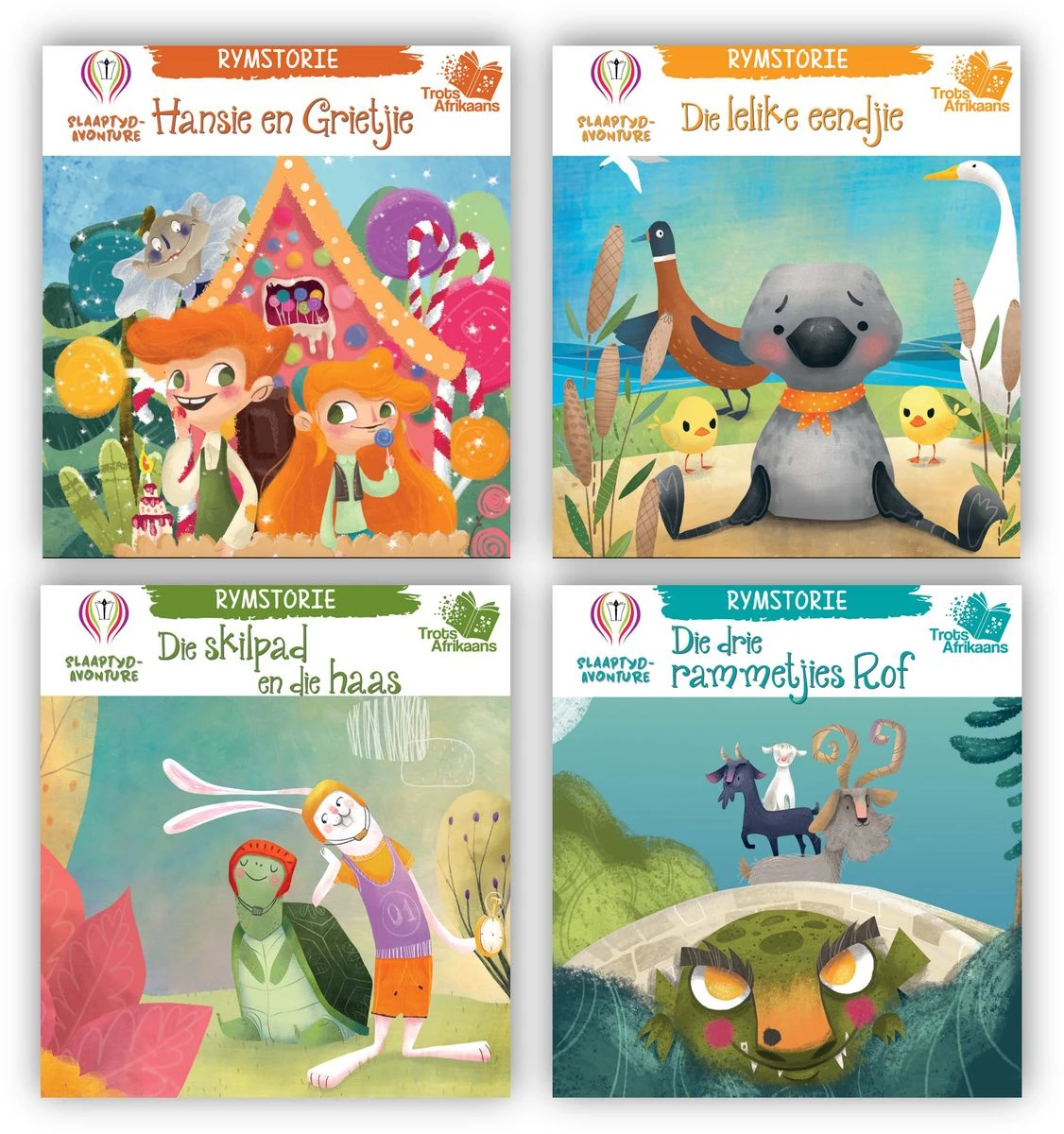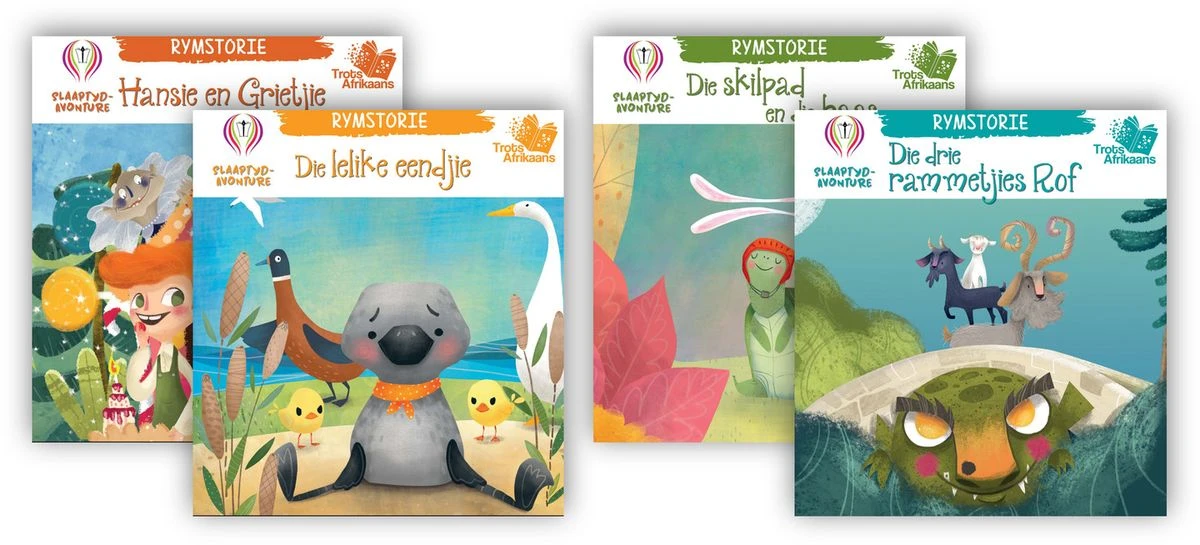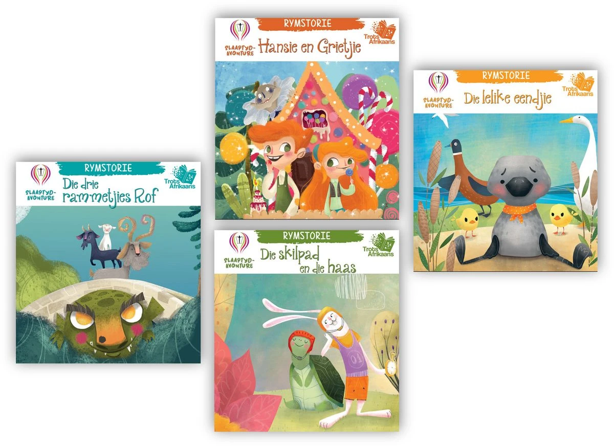 This bundle contains: Slaaptyd Avonture - Hansie En Grietjie Slaaptyd Avonture - Die Skilpad En Die Haas Slaaptyd Avonturee - Die Drie Rammetjies Rof Slaaptyd Avonture - Die Lelike Eendjie What's in the box 4 x Books |