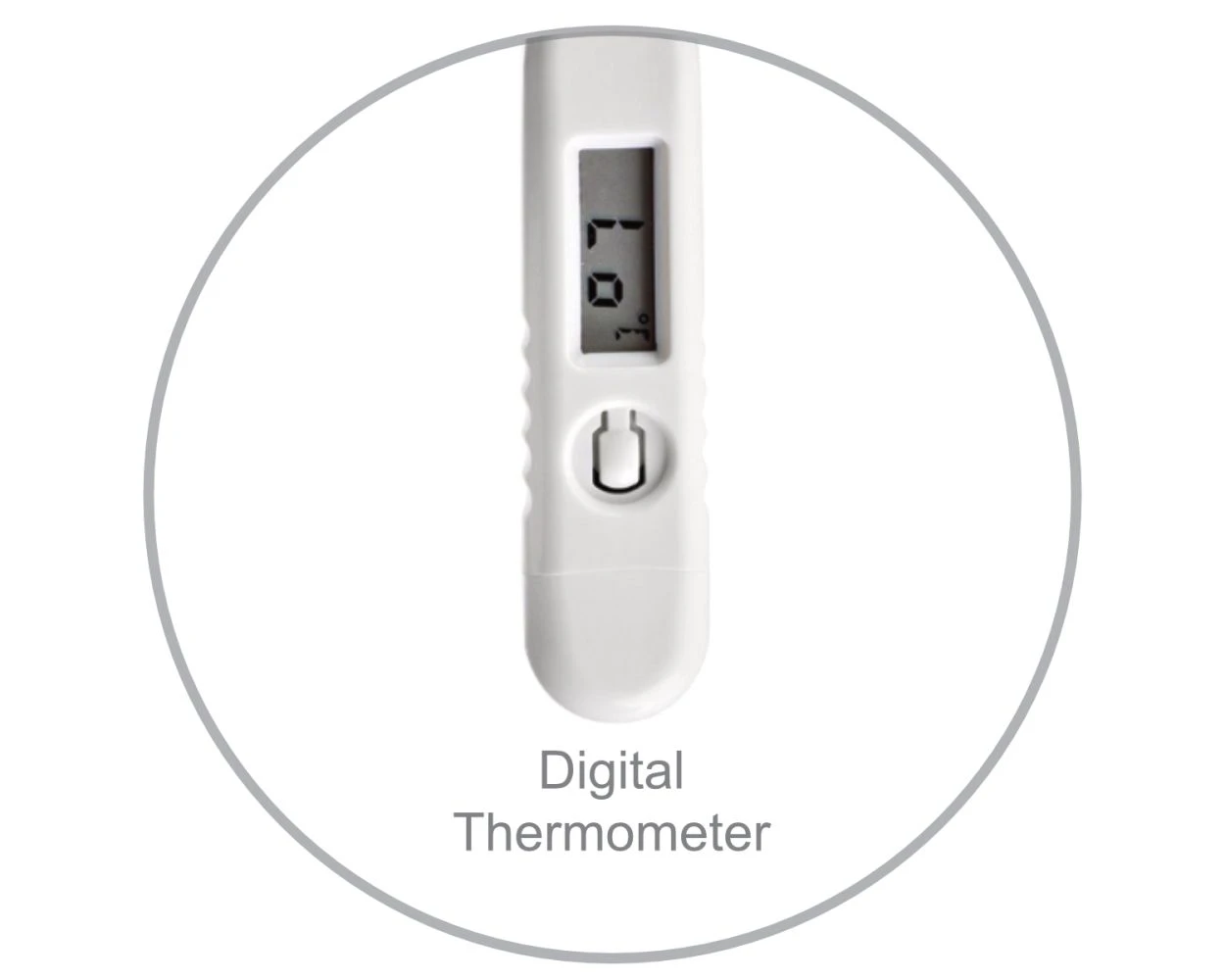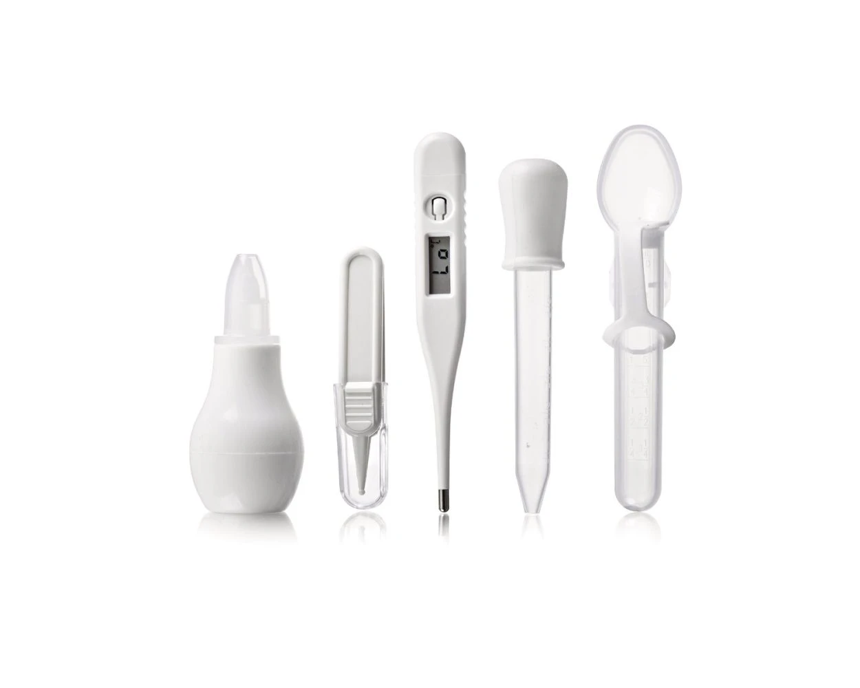 -5-Piece set: Take care of all your child's medical needs quickly and effectively with these carefully selected, perfectly sized tools. 1.Medicine dropper: simple, easy-squeeze bulb with clear dosage markings. Easy to administer the correct dosage. 2.Medicine spoon: smooth, rounded edges are perfect for a tiny mouth. Easy to use with embossed dosage markings. 3.Nasal aspirator: relieves nasal congestion by removing excess mucus from nasal passages. 4.Digital thermometer: takes an accurate temperature reading in 30 seconds and stores the last temperature taken. Beeps when peak temperature is reached. Up to 200 hours of battery life. 5.Baby tweezers: for cleaning baby's dry mucus from nose, naval and ears. -Perfect baby shower gifts: The ideal present for expecting mums or first-time parents. As it's gender-neutral, it will suit both baby boys and girls. Great for baby shower gifts, birthday and Christmas presents. |