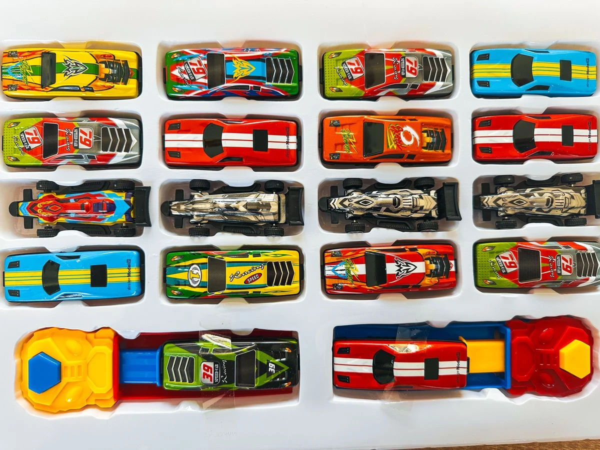 Rev up the fun with the Speed Racing Car Set, the ultimate playtime essential for little car enthusiasts! Featuring 18 sleek toy cars and 2 high-speed launchers, this set guarantees hours of racing excitement and imaginative play. Key Features: - 18 Stylish Toy Cars: Includes a variety of colorful, detailed car designs to spark creativity and keep kids engaged. - 2 High-Speed Launchers: Dual launchers for thrilling head-to-head races, perfect for competitive play. - Interactive Play: Encourages teamwork and friendly competition, promoting social skills and hand-eye coordination. - Portable & Lightweight: Compact design makes it easy to take the fun on the go - ideal for playdates or road trips. - Perfect for All Ages: Suitable for kids aged 3 and up, making it a great gift for birthdays, holidays, or just because! Whether they're racing against friends, siblings, or their imagination, the Speed Racing Car Set delivers action-packed fun that's sure to be a winner. Available now on Takealot - order today and let the races begin! What's in the box 18 Toy Cars and 2 Launchers |