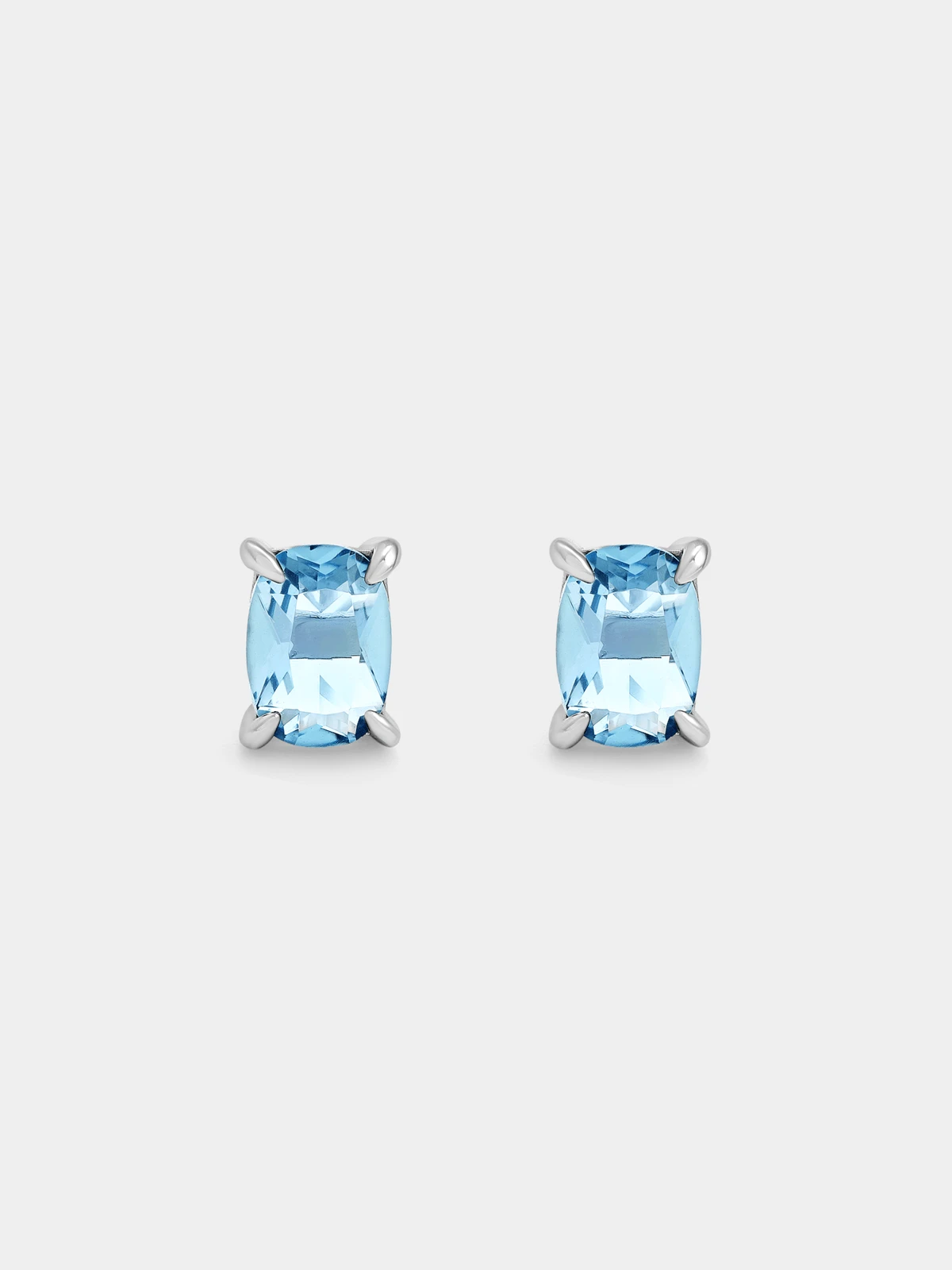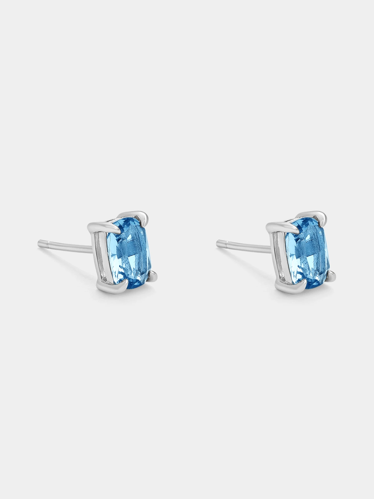 Expertly crafted in Sterling Silver, these beautiful stud earrings feature oval-cut aquamarine-coloured Cubic Zirconia. Gemstone Aquamarine Dimensions L7mm x W6mm x H4mm Material composition Sterling Silver Fibre content SILVER Stone colour LIGHT BLUE Material colour Rhodium Plated |